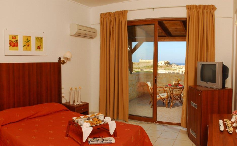 Главное здание Blue Bay Resort & Spa, построенное в 1995 году, было капитально отремонтировано три года назад. Новая обстановка в пастельных тонах гармонирует с окружающей пышной растительностью. В отеле есть номера как в классическом европейском, так и в традиционном греческом стилях. В первых большое внимание уделено качественной отделке, а во вторых каменные стены и деревянная мебель придают комнатам особый колорит, способствуют единению с природой. Особенно, если учесть вид искрящегося в лучах моря, который, к слову, доступен из каждого номера отеля.