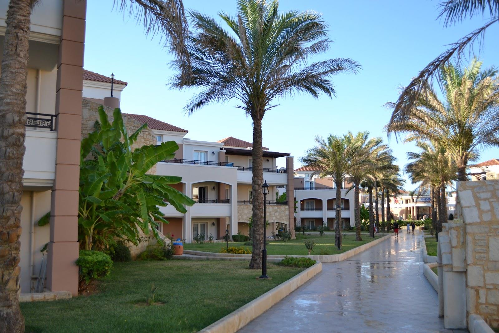 Шезлонги, лежаки, зонты обеспечат комфортный отдых, как у бассейна, так и на песчаном пляже. Кроме этого на территории отеля расположены: два открытых и два детских бассейна, для купания и занятий водными видами спорта, зал для занятия фитнесом, центр СПА-процедур, интернет уголок, зал для конференций, рецепция, небольшая греческая церковь, амфитеатр, магазин. Отелем предусмотрены места для игры в мини футбол, баскетбол, мини–гольф, бильярд, настольный теннис и стрельбы из лука.