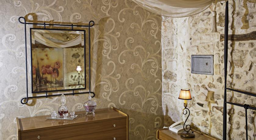 В отеле оборудованы 11 роскошных номеров в старинном стиле с каменной кладкой. Каждый номер оснащен: кондиционером воздуха, плазменным телевизором со спутниковыми каналами, телефоном, бесплатным интернетом, мини-баром, мини-холодильником, удобной зоной для приятного отдыха, практичной мебелью, мягкими спальнями с металлическими решетками и балдахином, сейфом для хранения ценных документов, балконом с чарующим видом, туалетом, укомплектованной ванной комнатой с расписными потолками, джакузи с гидромассажем. Ежедневно осуществляется уборка номеров. На территории гостиницы располагается прекрасный сад, где можно насладиться природой и общением с близкими людьми. Постояльцы могут воспользоваться: трансфером, обслуживанием в номерах, услугами массажного кабинета. Недалеко от отеля расположены магазины, развлекательный комплекс и рестораны, где можно попробовать разнообразные, вкусно приготовленные блюда и напитки.