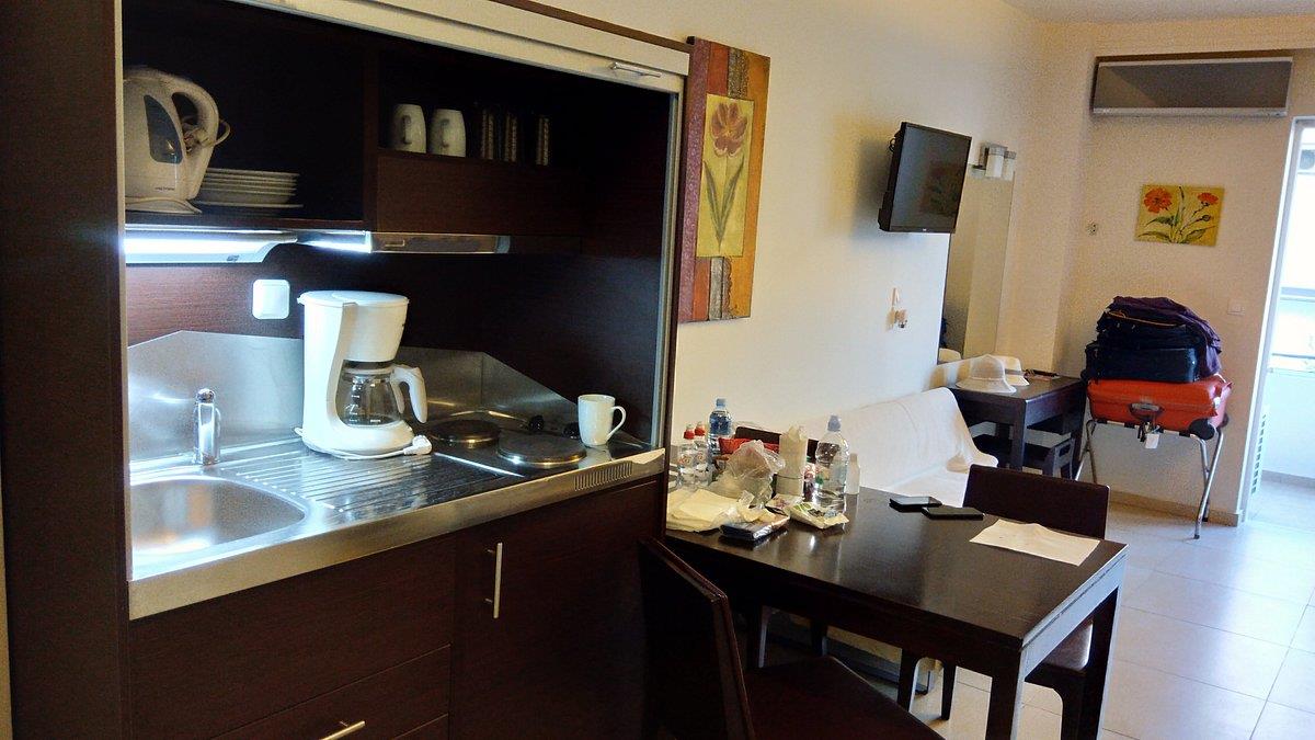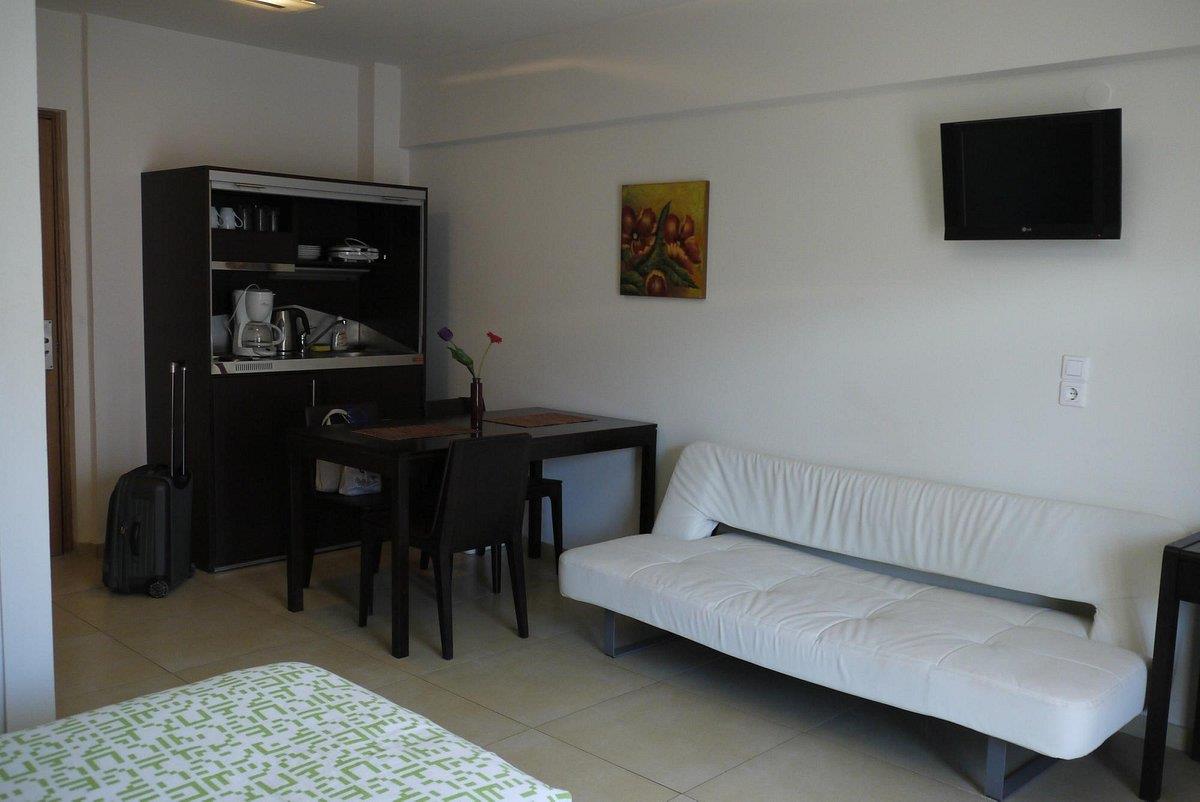 Восемнадцать роскошных студий способны вместить до трех гостей, готовых удовлетворить все потребности современного гостя. Двухконфорочная кухня, холодильник, кофеварка, посуда, телевизор со спутниковой антенной, кондиционер, ноутбук размерный сейф, письменный стол, диван, две односпальные кровати, джакузи, душевая кабина из хрусталя, фен и зеркало для макияжа - аксессуары, которые обеспечивают приятное пребывание и доступны в каждой студии.