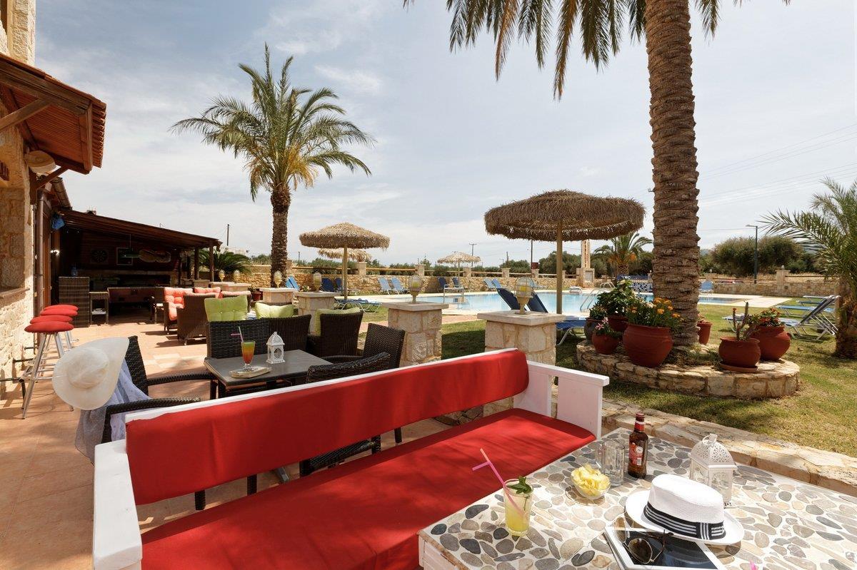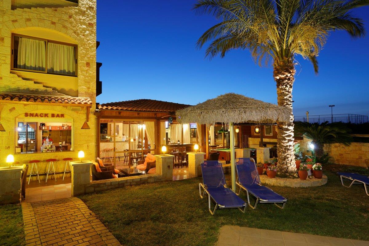 Все номера в отеле имеют максимум удобств – это кондиционер, сейф, телевизор, фен, холодильник. Есть отопление, кухня и отдельная ванная комната. В основном номера семейного типа с балконом. Напротив корпуса открытый бассейн с шезлонгами и огромными зонтами из пальмовых веток. Продумано детское отделение с мелким дном.