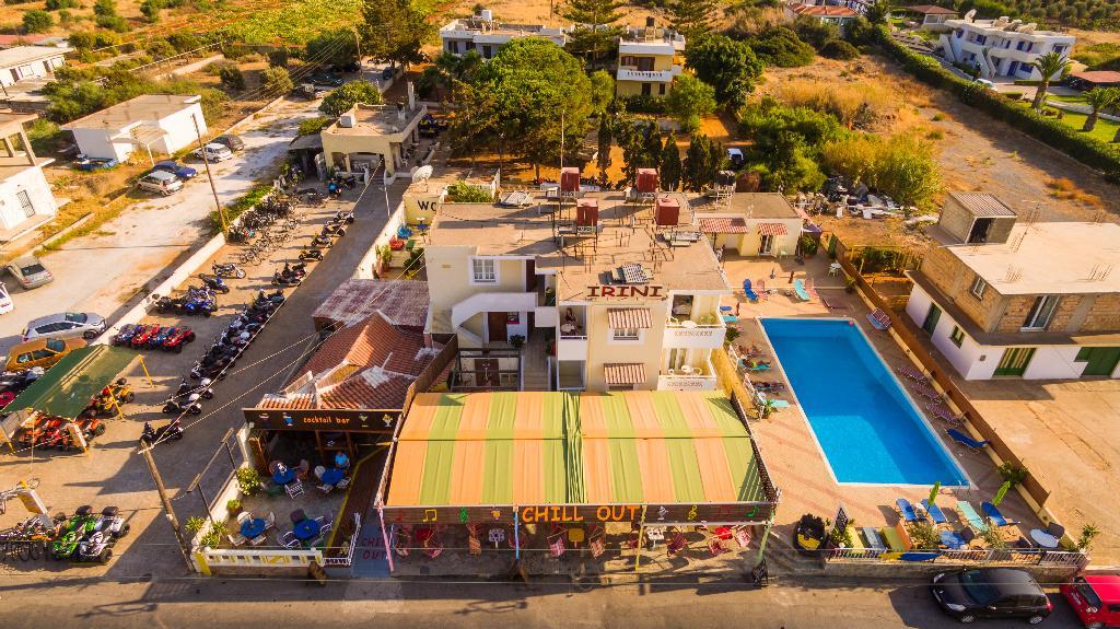Irini Studios – трехзвездочный отель, расположенный на острове Крит, в 34 км от города Ираклион и в 30 км от аэропорта, что позволяет гостям добраться до отеля менее чем за 40 минут. Песчаный пляж находится всего в 150 м от гостиницы. Шезлонги и зонты на пляже предоставляются за отдельную плату. Рядом с отелем множество магазинов, поэтому любители шоппинга скучать не будут.