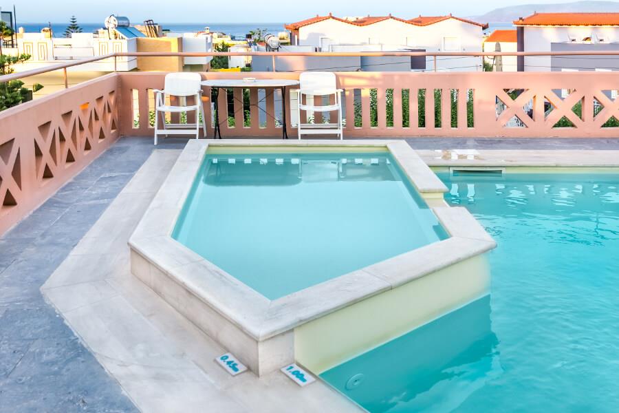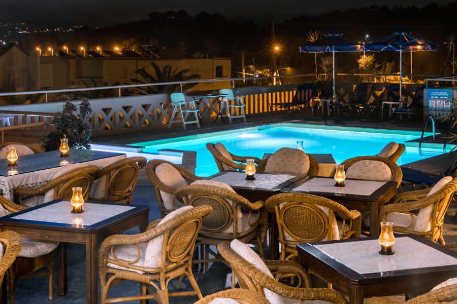 Гостиница располагает бассейном с террасой, где можно насладиться завтраком или освежающим напитком, любуясь морским и горным пейзажем. Для отдыхающих действует прокат автомобилей и велосипедов, на которых можно отправиться исследовать остров. Также для маленьких гостей оборудован детский бассейн.