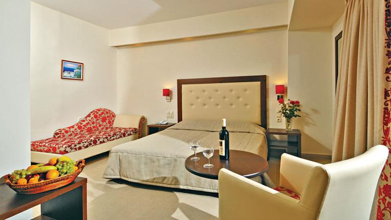 Каждый из двухсот двенадцати номеров Marilena предлагает полный перечень удобств, необходимых современному путешественнику, который находится за сотни километров от родного дома. Есть здесь и сейф, и мини-бар с небольшим холодильником, и телевизор со спутниковыми каналами, и кондиционер. С балконов и террас открывается яркая синева моря или же зеленеющий сад, в тени которого, удобно устроившись в шезлонгах под соломенными зонтиками, отдыхают гости отеля. Выдержанная в светлых тонах ванная комната оборудована душевой кабинкой, укомплектована феном и набором мыла. Остальные туалетные принадлежности туристы чаще всего привозят с собой из дома. Однако их всегда можно приобрести и в многочисленных магазинчиках по соседству.
