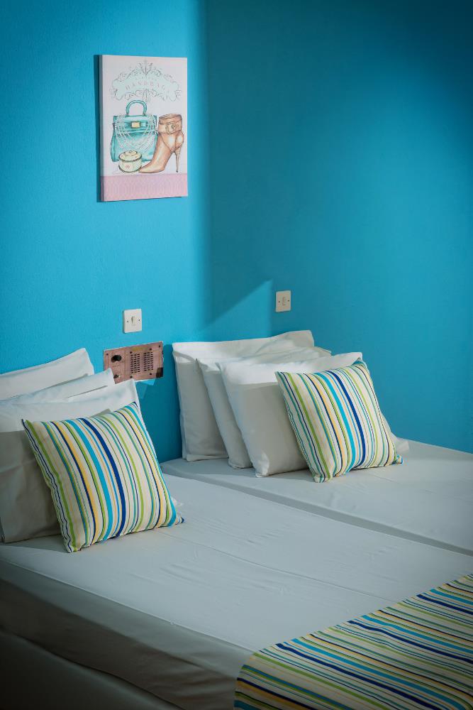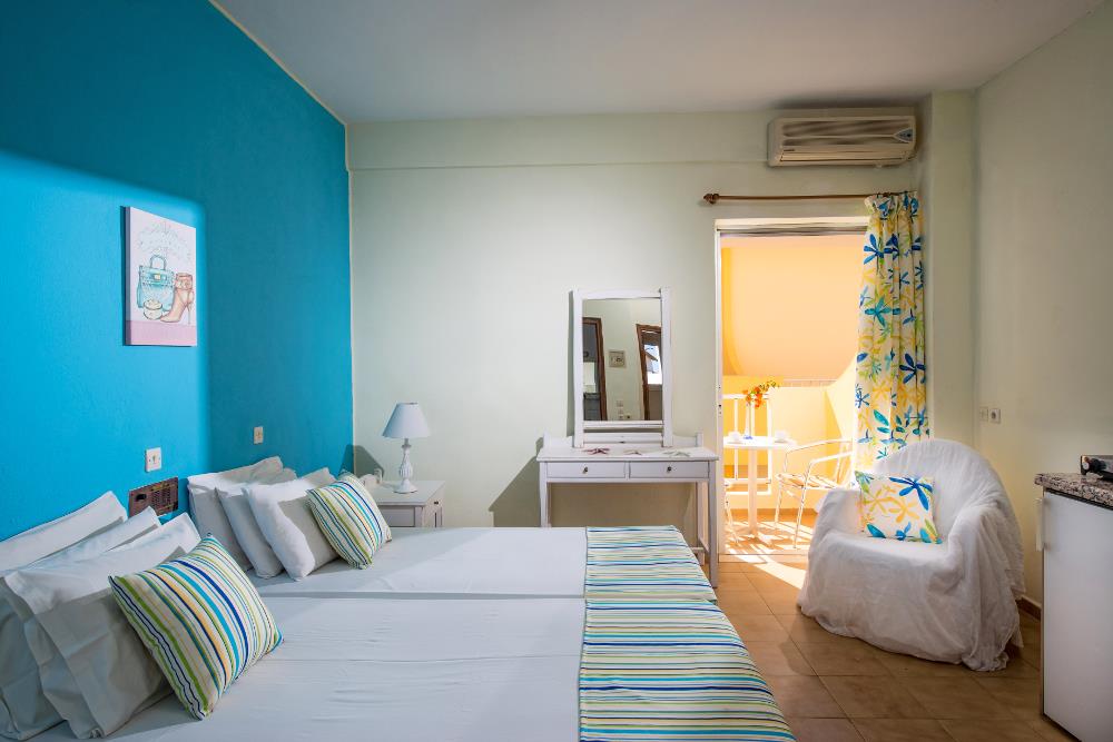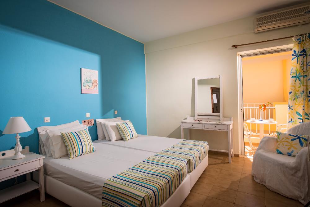 В распоряжении постояльцев светлые, просторные номера, оформленные со вкусом. Каждый номер включает: кабельное телевидение, кондиционер, ванную комнату с душевой кабиной и туалетными приборами. Все номера имеют балкон с видом на морской пейзаж. Уборка осуществляется каждый день. Ресторан специализируется на изысканных блюдах греческой и международной кухни.