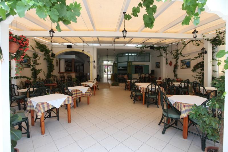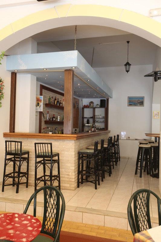Каждое утро, на территории отеля, накрывается континентальный завтрак. Проголодавшись, влекомые дивными ароматами, постояльцы спешат в уютный ресторан. Тут угощают блюдами греческой кухни и традиционными европейскими кушаньями. В отеле в распоряжении гостей два бара с широким ассортиментом коктейлей, горячих напитков, а также легких закусок. Один из них располагается возле ресторана и работает до утра, а второй – в двух шагах от открытого бассейна с пресной водой – что позволяет отдыхающим подкрепиться или освежиться коктейлем, не прерывая процесс принятия солнечных ванн, прямо в шезлонгах, что расставлены здесь же. Те, кто не любит загорать, могут устроиться на ложах под массивными теневыми зонтами.