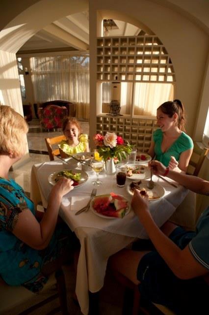 Отель предлагает гостям питание по системам «полупансион» или «все включено». Кулинарные возможности главного ресторана, специализирующегося на греческих и международных блюдах, усилены домашней критской кухней ресторана a la carte Galazio. На открытой летней площадке последнего виртуозный шеф-повар вершит настоящие чудеса гастрономического искусства из местных продуктов. А лобби-бар и бар у бассейна без устали готовы утолять жажду отдыхающих отменным выбором прохладных напитков. Впрочем, не так уж далек путь до местных таверн и ресторанов, если захочется еще большего разнообразия в питан