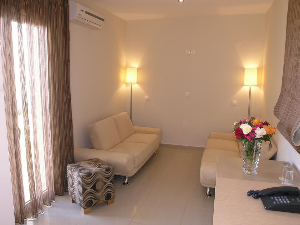 Всего для поселения в Rethymno Sunset доступно сто десять номеров различных категорий: стандартные, площадью двадцать пять квадратных метров, и семейного типа, более просторный, готовый с комфортом принять до четырех гостей. Часть апартаментов семейного типа – двухкомнатные и располагают дополнительной ванной комнатой. Все номера обставлены современно и со вкусом. В уютных интерьерах господствуют спокойные, приятные глазу тона благородной коричневой палитры, а новенькие кафельные и мраморные полы сверкают чистотой. Заботу о ценных вещах гостей берут на себя, за небольшую дополнительную плату, надежные сейфы у стойки регистрации. Платный доступ к Глобальной сети также не вызывает и тени протеста, даже у самых зависимых от интернета: пейзаж за окном красочнее любых профессиональных фотографий, а прогулки здесь увлекают больше виртуального общения.