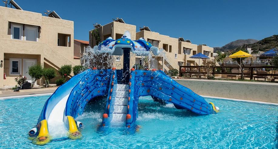 Гостям отеля предоставлены бесплатные туалетные принадлежности, фен, полотенца. В каждом номере есть кондиционер, телевизор, сейф, минибар. Рестораны и кафе предлагают гостям отеля попробовать блюда греческой, критской, итальянской и европейской кухни. На территории отеля есть красивый парк для прогулок. Для детей предусмотрены специальные площадки, аквапарк и, конечно, бассейн. Весь спектр положительных эмоций можно получить, посетив массажный кабинет и spa-салон. Также, не покидая территорию отеля, можно поплавать в бассейне со свежей морской водой. Отель расположен недалеко от исторических достопримечательностей, старинного замка, пальмового леса, Минойского дворца и многих других интересных мест. Чтобы вы успели посетить все достопримечательности, отель предлагает услугу аренды автомобиля.