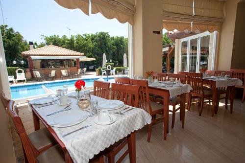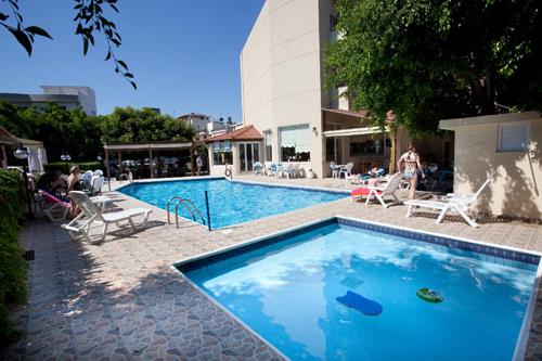 Трехэтажное здание гостиницы, выполненное в лучших традициях греческого архитектурного стиля, гордо возвышается над верхушками деревьев. Внутренний двор также утопает в густой растительности ухоженного декоративного сада. Шестьдесят девять номеров со вкусом обставлены изящной мебелью из темного дерева и оформлены в пастельных тонах, что создает спокойную атмосферу и по-настоящему летнее настроение. Комнаты рассчитаны на проживание двух или четырех постояльцев. Здесь есть все, чтобы жильцы чувствовали себя комфортно: кондиционер, телевизор, по которому транслируются кабельные и спутниковые каналы, холодильник, телефон с прямым набором, а также отдельный санузел с ванной или душевой кабиной, укомплектованный туалетными принадлежностями, феном.