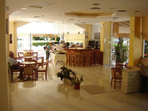 Полноценный же завтрак, состоящий из блюд средиземноморской и международной кухонь, с обилием свежих фруктов, сервируется в главном ресторане, сквозь огромные окна которого льются потоки солнечного света, и взору открывается панорамный вид на внутренний дворик, сад и бассейн. Из развлечений, доступных постояльцам Hotel Sofia, на его территории только телевизионный зал. Зато прямо за воротами курорта сосредоточены всевозможные увеселительные заведения, хозяева которых радушно встречают гостей, а потом не дают им заскучать ни на мину