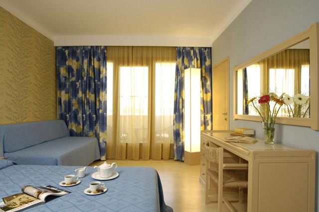Простое и одновременно стильное убранство двухсот сорока семи номеров с предметами антиквариата и живыми цветами делает проживание в них приятным и комфортным. В распоряжение гостей предоставляются холодильники, телевизоры со спутниковыми каналами, фены, сейфы и WI-Fi в номерах повышенной комфортности, в стандартных – он доступен за дополнительную плату. Гостиничный комплекс был полностью отремонтирован в 2008 году, здания соединяются коридором, есть вариант прохода через улицу. Ванные комнаты полностью укомплектованы, большинство оборудованы душевыми кабинами, часть – ваннами, сьюты предлагают своим постояльцам персональные джакузи. В номерах типов супериор и сьют есть все для приготовления кофе и чая, а также халаты и тапочки в ванных комнатах. Если есть такое желание, персонал предлагает осмотреть комнату, чтобы гость сам сделал выбор между свободными помещениями. Окна и балконы выходят на бассейн или улицу, некоторые открывают частичный вид на море.