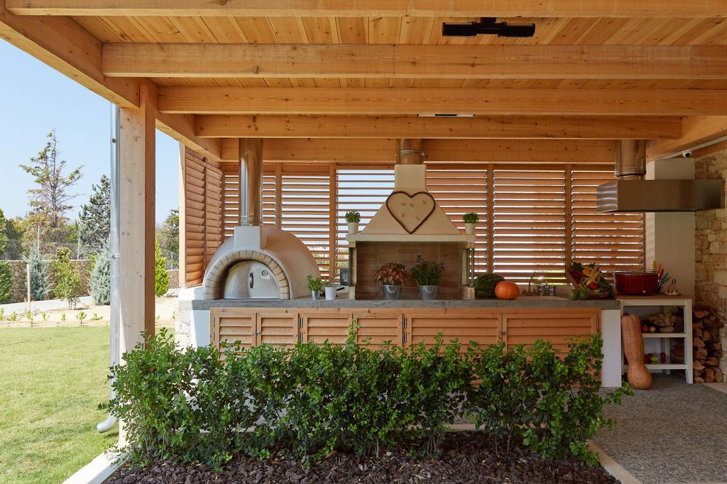 - полностью оборудованная площадка для барбекю на углях с деревянной духовкой и раковиной