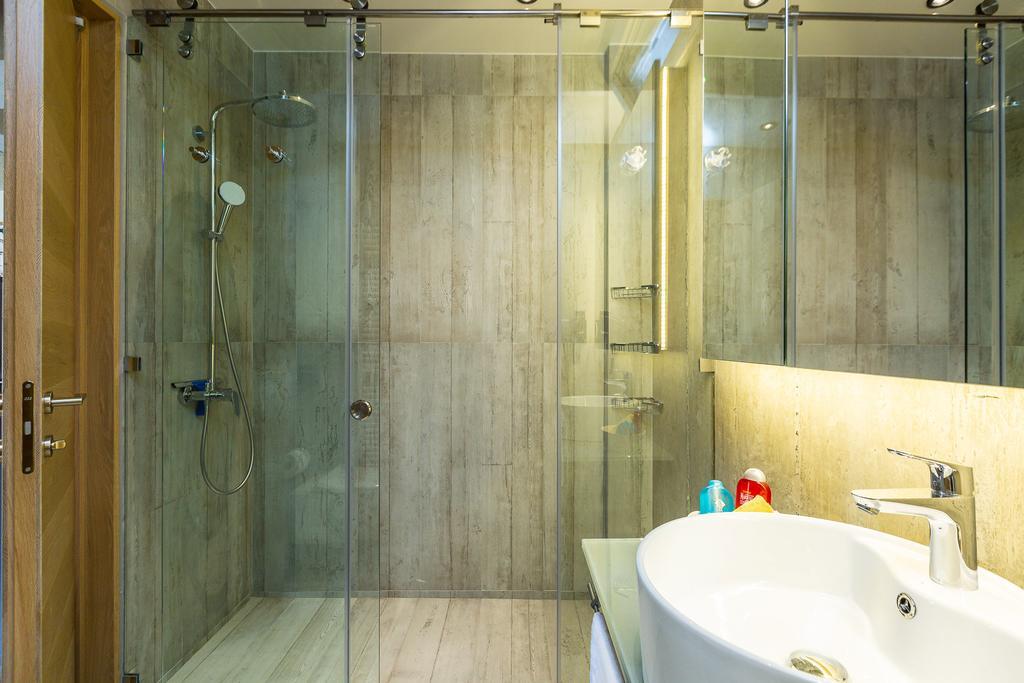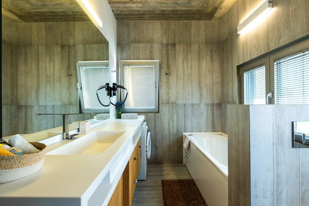 Все спальни имеют доступ к открытой площадке и бассейну. Кроме того, на одном этаже есть ванная комната с душем и отдельный туалет.