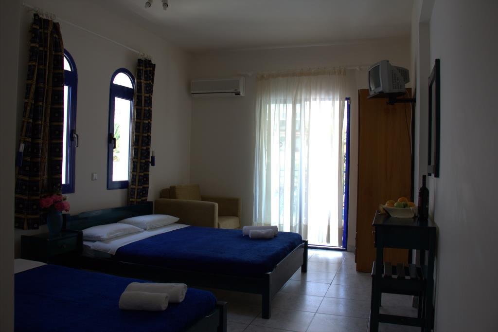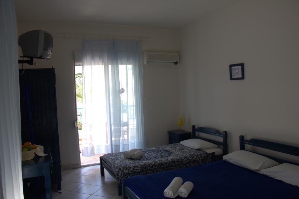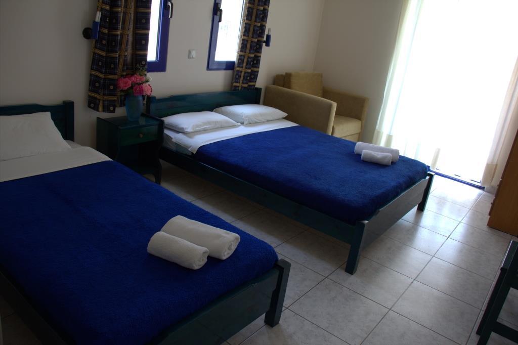 Гостиница предлагает разместиться в одном из тридцати современных номеров, среди которых двух- и четырехместные апартаменты. Дизайн помещений прост и непритязателен, без вычурных элементов декора или утонченных украшений, ровно настолько, сколько требуется для спокойного и комфортного отдыха. Полы покрыты мраморной плиткой, стены преимущественно белого цвета, украшены картинами и акварелями флористической тематики. Из мебели – просторные кровати под белоснежными простынями, прикроватные тумбочки, журнальные или косметические столики с зеркалами, несколько кресел и вместительные шкафы. Оснащение соответствует заявленной звездности: централизованный кондиционер с возможностью индивидуальной регулировки, спутниковое телевидение со множеством музыкальных и новостных каналов, телефон с прямым набором, высокоскоростной беспроводной интернет, цифровой сейф; работает энергосберегающая система. Кроме того, есть полностью оборудованная кухня с электроплитой, чайником, вытяжкой, мини-холодильником, мойкой для посуды и необходимой утварью. С меблированных балконов открываются виды на окрестности, густую зелень садов и милый внутренний дворик. Ванные комнаты компактны, но в каждой – тропический душ, большое зеркало и мощный фен. Персонал отзывчив и ненавязчив, многие хорошо говорят по-русски.