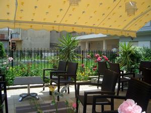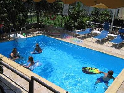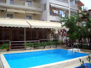 Небольшой семейный отель Mallas расположился в самом центре поселка Неа-Калликратия, в окружении магазинчиков и симпатичных кафе, на расстоянии всего пятидесяти метров от морского побережья. Два четырехэтажных здания выстроены в классическом стиле с ровными линиями балконов, укрытых от непогоды полотняными козырьками. Практически всю свободную территорию занимает рукотворный сад из цветов и декоративного кустарника, посреди которого, словно лесное озеро, переливается бирюзой компактный бассейн.