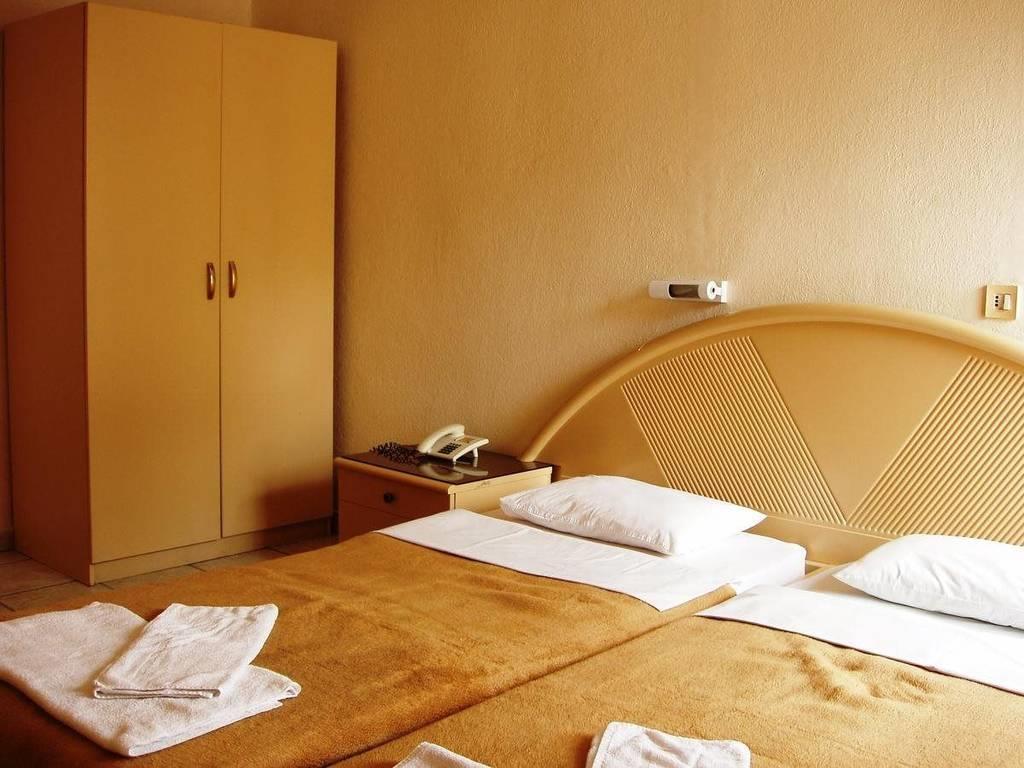 Популярный экономичный отель для любителей активного отдыха. Трехэтажное здание отеля отреставрировано в 2005 году. Расположен в двух шагах от пляжа, есть летняя веранда и тренажерный зал. К вашим услугам удобные номера и гостепритимный персонал. Удобное расположение открывает легкий доступ к ночным клубам, барам и множеству магазинов. Размещение в 24х номерах: из них 10 семейных номера и 2 сюиты. В стандартном номере: кондиционер, отопление, спутниковое телевидение, российское канал, телефон, холодильник, душ, фен (по запросу), балкон. Семейные номера двухкомнатные. Тип доп. кровати
