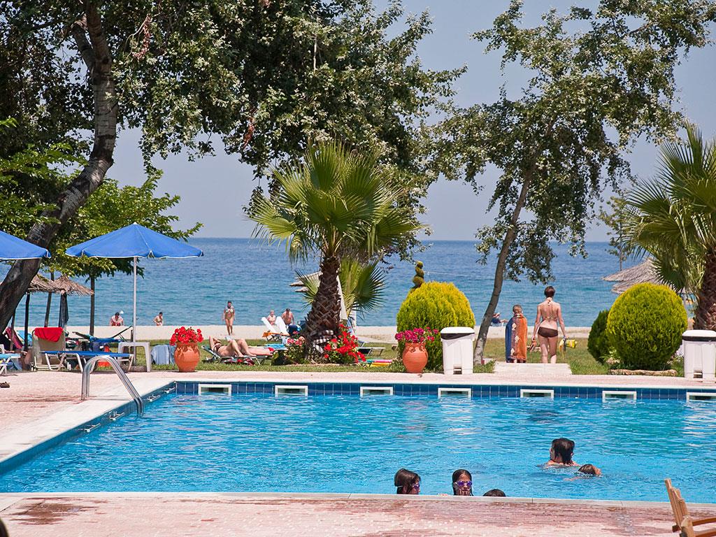 Sun Beach Platamon расположен у подножия горы Олимп в поселке Платамонас, Пиерия. Любителям познавательного туризма тут самое место, поскольку недалеко от гостиницы находятся руины Вергины, Диона, Каламбаки. До аэропорта Македония ехать около 2 часов.