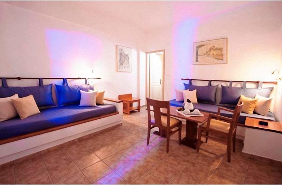 К услугам гостей – двадцать семь комфортабельных номеров: двух-, трехместные, семейные и люксы. Здесь предусмотрены системы кондиционирования и обогрева, телефоны с прямой внешней линией, сейфы, спутниковое телевидение, а в комнатах люкс – уголки для приготовления чая и кофе. Wi-Fi в отеле предоставляется бесплатно в специально отведенных местах. Общественные интерьеры радуют классической элегантностью. Оригинальность дизайнерского подхода в оформление жилых помещений выражается в тонкости цветовых решений в сочетании с естественностью: пастельные оттенки стен, золотистое дерево мебели, песочная керамическая плитка на полу, светлый текстиль, легкие драпировки обрамляющие выход на просторные балконы, зрительно расширяют пространство, словно впуская в него свет и воздух.