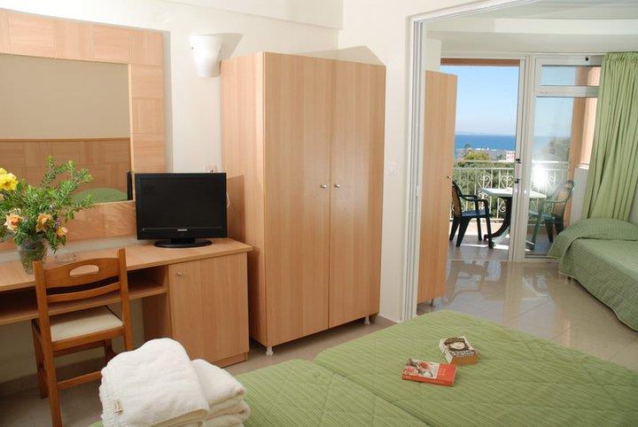 – Закинфе, славящемся разнообразием цветов и растений, а также редкими видами животных, в небольшом городке Аргаси, на территории которого находится знаменитый старинный мост, построенный в 1800 году, впечатляет изысканной архитектурой с винтовыми лестницами и множеством колонн отель Admiral Argassi. Он составляет единый комплекс с гостиницами Commodore и Captain’s.Выгодное расположение Admiral Argassi всего в трех километрах от столицы острова с ее развлечениями и достопримечательностями делает отель прекрасной стартовой площадкой для увлекательных экскурсий. Неподалеку находится пристань, от которой белоснежные яхты и небольшие суда доставляют туристов в заповедные уголки острова, такие, как Голубые пещеры или бухта кораблекрушения Наваго.Трехэтажные здания гостиницы радуют глаз нежными терракотовыми красками в сочетании с белыми узорными ограждениями балконов. Колонны придают строениям монументальность и подчеркивают средиземноморский стиль. Пышные пальмы, цветущие кустарники и изумрудный газон являются основными украшениями органично спланированной территории.Лобби, декорированное в пастельных тонах с использованием натурального дерева, просторно и позволяет гостям с комфортом пройти процедуру заселения. В зале для просмотра ТВ, оборудованном плазменным экраном и удобной мебелью синего цвета, приятно скоротать часы полуденной жары за просмотром любимой телепередачи. Беспроводной интернет доступен во всех общественных местах отеля.Номерной фонд Admiral Argassi состоит из девяноста шести апартаментов с одной спальней, ванной комнатой и небольшой кухней. Здесь с комфортом размещаются до четырех постояльцев. Светлые комнаты украшены живыми цветами и картинами. С балконов и террас открываются захватывающие виды на морскую акваторию с окрестностями столицы или на зеленый сад с цветущими растениями, источающими нежный аромат. Не зря венецианцы называли этот остров Цветком Востока.В отеле есть открытый бассейн с зонтиками и удобными шезлонгами, пользуются которыми туристы бесплатно, как и на пляже гостиницы. К услугам гостей, путешествующих автотранспортом, предусмотрена парковка. Не покидая Admiral Argassi постояльцы обменивают валюту, а необходимые мелочи покупают в магазине комплекса.Наличие анимации, бильярда и дартса позволяет с удовольствием проводить досуг на территории отеля. Ежедневная развлекательная программа рассчитана не только на туристов Admiral Argassi, но и на постояльцев двух соседних гостиниц. Здесь проходят греческие вечера, барбекю, детские праздники, различные игры и мероприятия. Кстати, для маленьких гостей обустроены детский бассейн и игровая площадка, а пологий вход в море обеспечивает безопасное купание.Ресторан, в котором завтраки, обеды и ужины проходят в формате шведского стола, расположен в соседней гостинице Captain’s. Лобби-бар Admiral Argassi предлагает разнообразные напитки и легкие закуски. В отеле на выбор постояльцев есть три системы питания: «завтрак», «полупансион» или «все включено» (трехразовое питание плюс безалкогольные напитки, местное пиво и алкоголь).