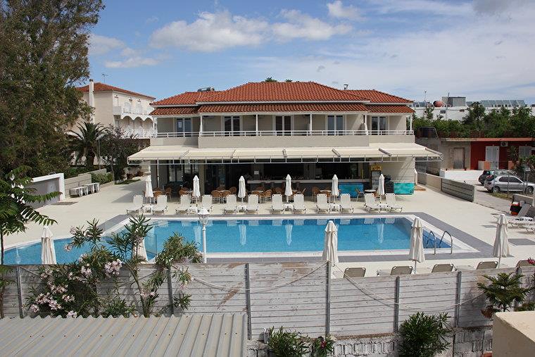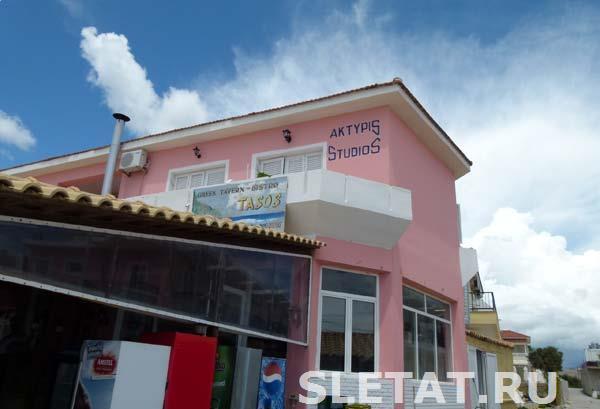 Именно здесь и находится отель Aktypis Studios. Двадцать шесть небольших уютных номеров-студий расположились в паре двухэтажных корпусов, построенных позади популярной в Лаганасе таверны Tasos и пляжного бара при ней. Здесь нет площадок для спортивных игр, анимации и собственного бассейна (постояльцы купаются в бассейне соседнего отеля). Однако гостиница все же привлекает не только молодых людей, главной целью которых является погружение в водоворот ярких развлечений в ночных увеселительных заведениях курорта, но и семьи с маленькими детьми. Ведь от песчаного пляжа и моря, которое в Лаганасе славится теплым прибрежным мелководьем, отель Aktypis Studios отделяют всего лишь тридцать метров.