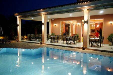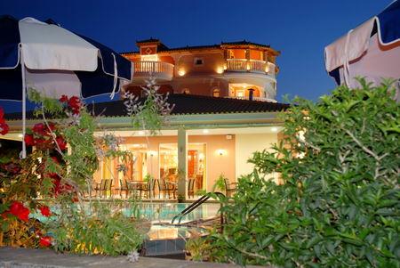 Уютная территория, традиционный архитектурный стиль, бассейн, сад, комфортабельные просторные номера с оборудованной кухней, ресторан и бар, интернет, бильярд, качественный сервис. Идеально подойдет для комфортного семейного отдыха. Расположен на О-в Закинф, в 400 м от центра пос. Циливи, в 5 км от аэропорта, в 3 км от города Закинф и порта острова. Состоит из четырехэтажного здания, лифт.