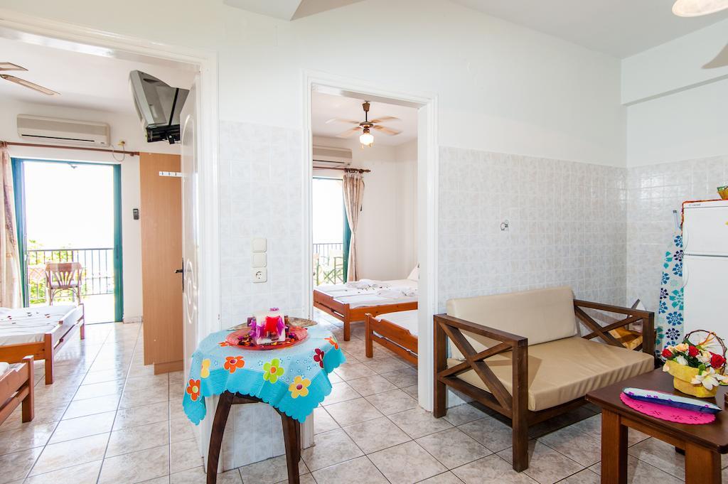 В уютных номерах-студио и апартаментах есть все необходимое для отдыха: холодильник, телевизор, собственная кухня и кондиционер. С балконов отеля открывается прекрасный вид на Ионическое море.