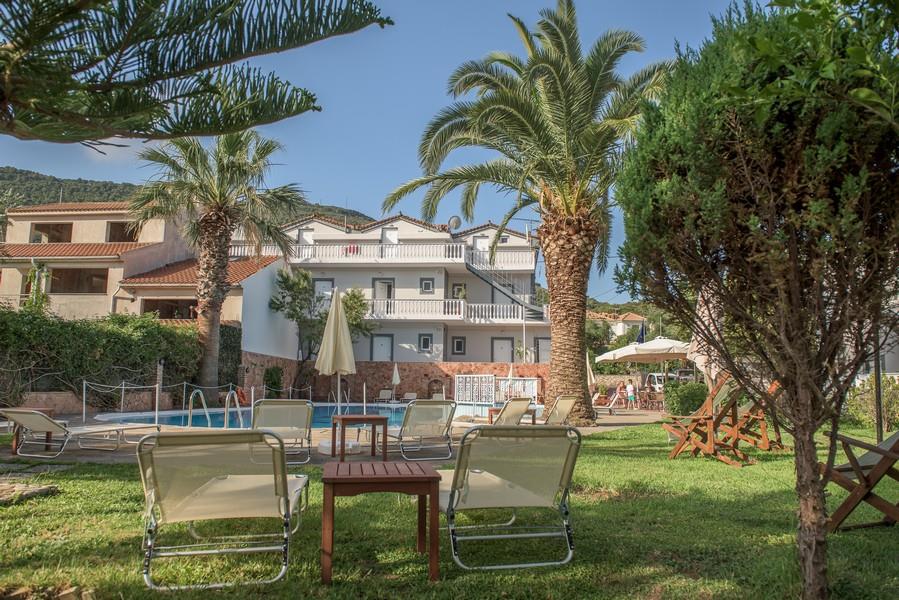 Интерьер номеров выполнен в традиционном греческом стиле. Все апартаменты оснащены меблированными балконами, сейфами и кухнями. В улучшенных номерах установлен кондиционер.