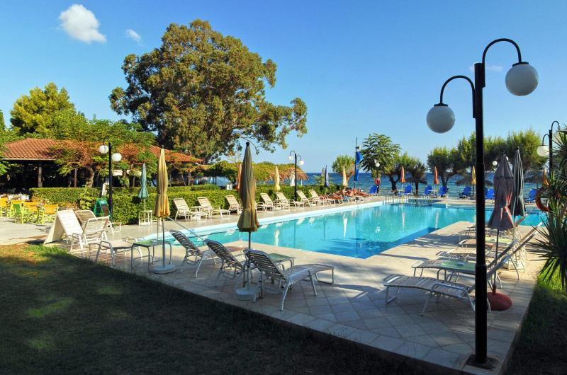Отель Mimoza Beach 3* расположен на острове Закинф, Греция, на побережье Ионического моря. Дорога от аэропорта до апартаментов занимает не больше получаса езды на автомобиле. Песчаный пляж находится в 10 метрах от гостиницы, где предоставляются платные лежаки, зонтики, пляжные полотенца. Отель словно утопает в экзотических растениях, что делает морской воздух еще более освежающим.