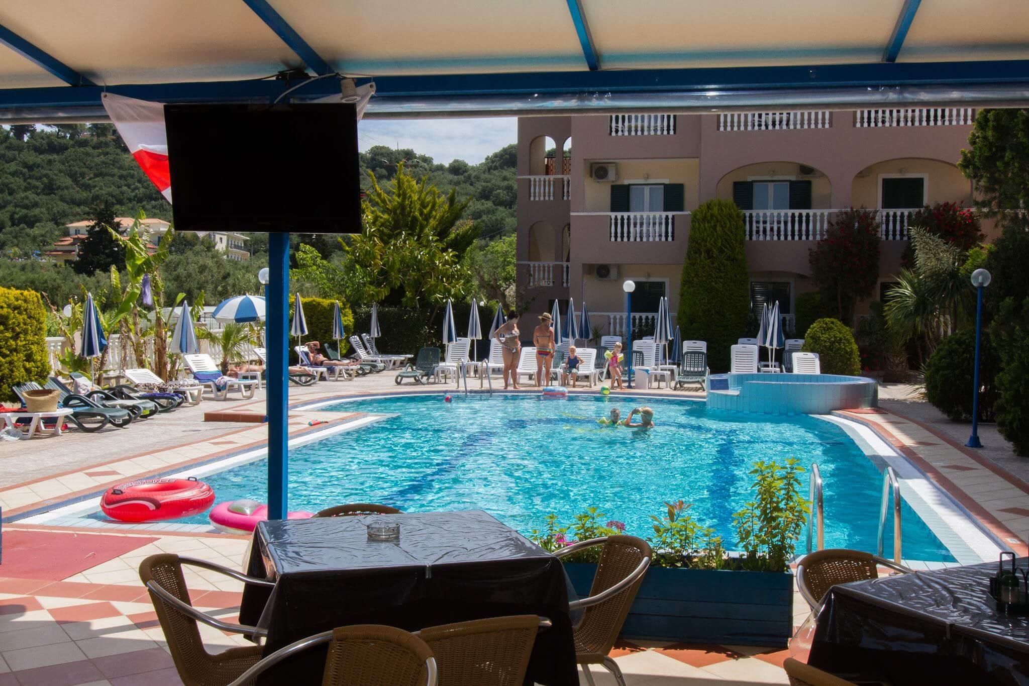 На территории отеля есть зона отдыха со взрослым и детским бассейнами, шезлонгами и зонтами. Также гости могут бесплатно воспользоваться подключением к сети Wi-Fi и взять книги из небольшой библиотеки. В качестве необычного развлечения здесь организуют для постояльцев Греческие ночи с традиционными танцами, напитками и блюдами, приготовленными на гриле. В снек-баре отеля гости отеля могут заказать освежающие коктейли и закуски.