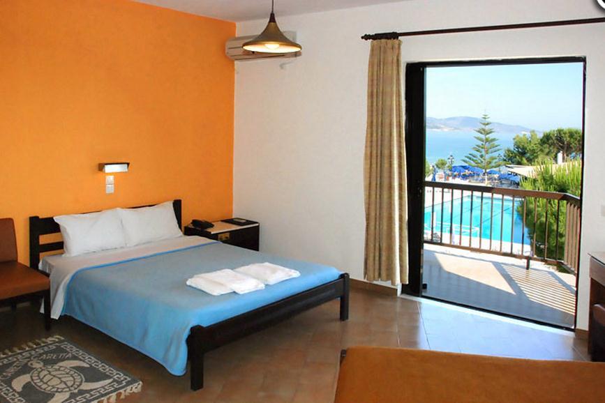 Небольшой, но уютный семейный отель размещает на постой в тридцати четырех номерах. В оснащении каждого из двух- и трехместных апартаментов предусмотрены телевизор со спутниковыми каналами и DVD-плеером, мини-холодильник, телефон с прямым набором и, конечно же, кондиционер. Во всех комнатах, равно как и по всей территории гостиницы, предоставлен беспроводной доступ в Интернет. Кроме выхода во Всемирную паутину, из каждого номера предусмотрен выход и на широкий меблированный балкон, с которого открывается захватывающий вид на лазурь Ионического моря, величественные горы.