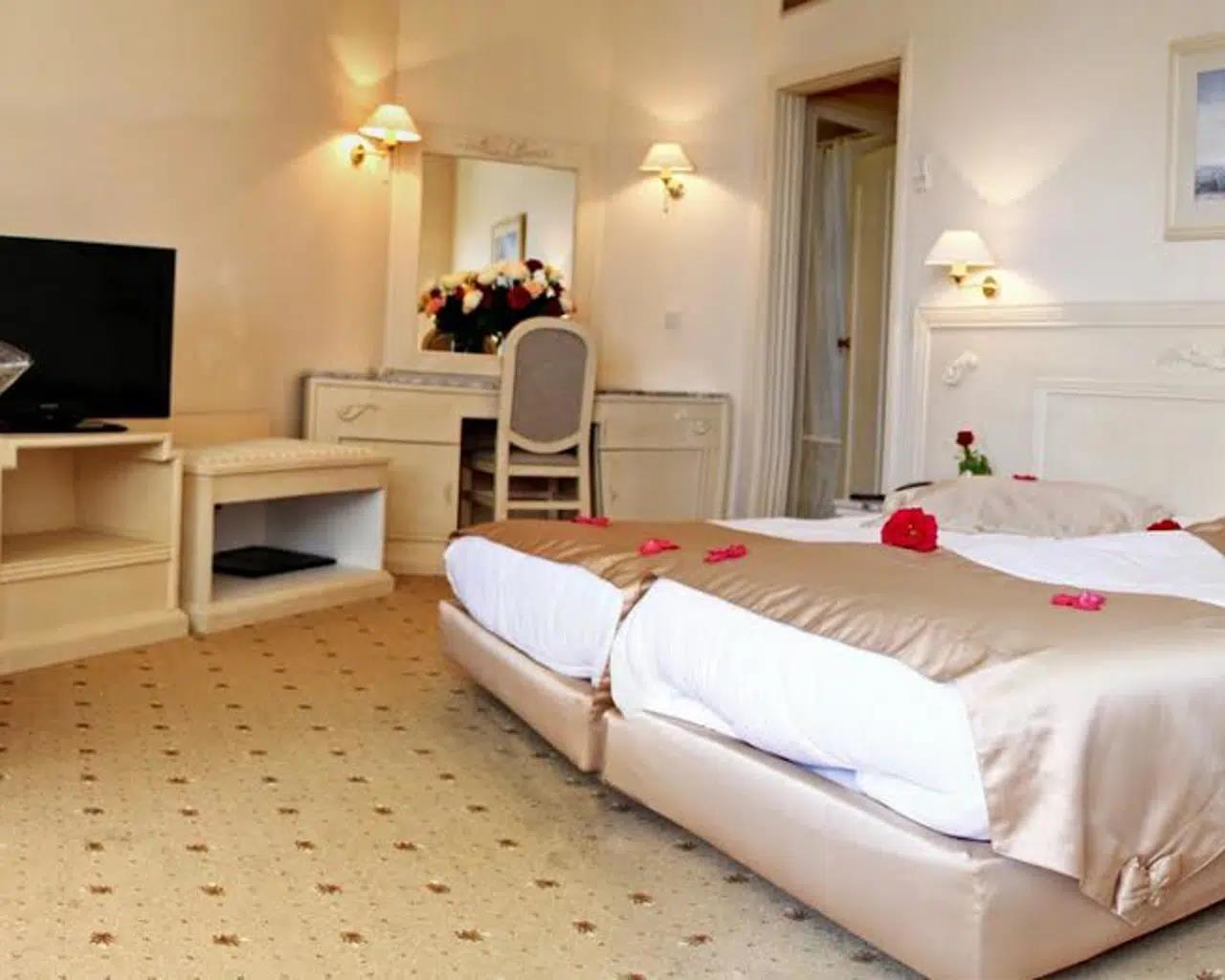 Orient Palace располагает почти четырьмя сотнями номеров. Не всех из них имеют вид на море, но зато все без исключения дополнены балконами со столиками и стульями, для того чтобы гости могли провести вечер попивая коктейль, общаясь или просто наслаждаясь свежим средиземноморским воздухом. Лакированная мебель в комнатах выполнена в едином классическом стиле. Приятное впечатление от апартаментов дополняют огромные стеклянные двери-окна, через которые комнаты наполняются ярким солнечным светом в течение всего дня, и большие ванные комнаты.