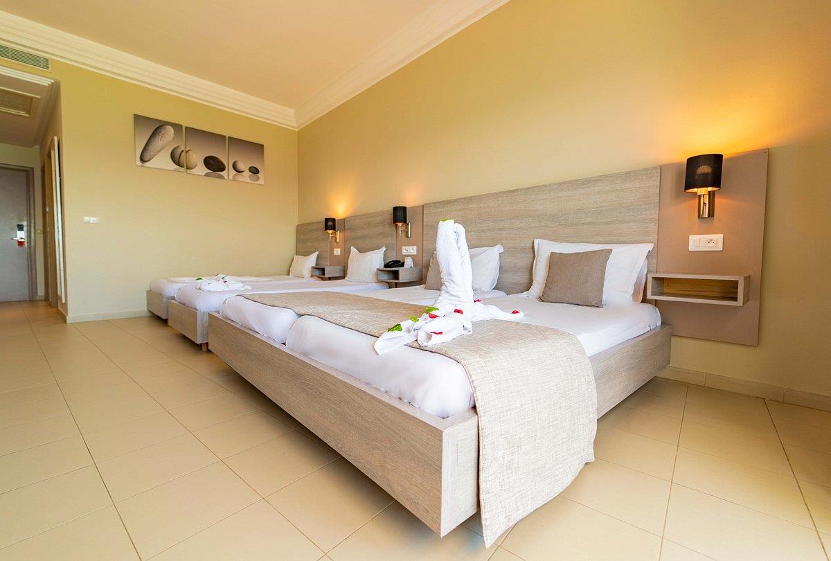 Отель Riadh Palms Hotel вмешает шестьсот пятьдесят номеров, оформленных в восточном стиле. Яркая мебель, воздушные занавески на окнах, картины и большие светильники создают ощущение уюта в кондиционированных комнатах. Спутниковое телевидение транслирует многочисленные каналы, а в мини-баре хранятся прохладительные напитки. Любители дополнительного комфорта выбирают номера люкс с утонченным дизайном, отдельными гостиными и двумя спальнями. Ближе к вечеру, когда ветерок прогоняет полуденный зной, жильцы располагаются за столиками на балконах и любуются лазурными просторами моря или сочной зеленью парка.