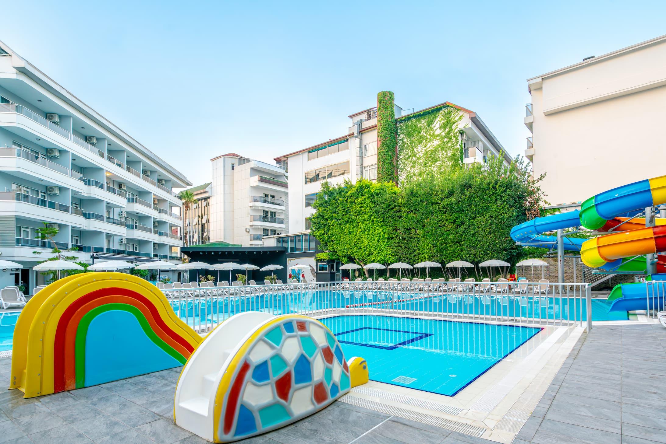 На территории отеля имеется большой открытый бассейн с подсветкой. Также свободное время гости проводят за игрой в бильярд, настольный теннис или дартс. Для восстановления сил и расслабления имеются турецкая баня и массажный салон. Песчаный пляж расположен в двухстах метрах, для безопасности туристов построен подземный переход. На берегу имеется возможность заняться водными видами спорта. Для любителей активного отдыха оборудована пляжная волейбольная площадка.