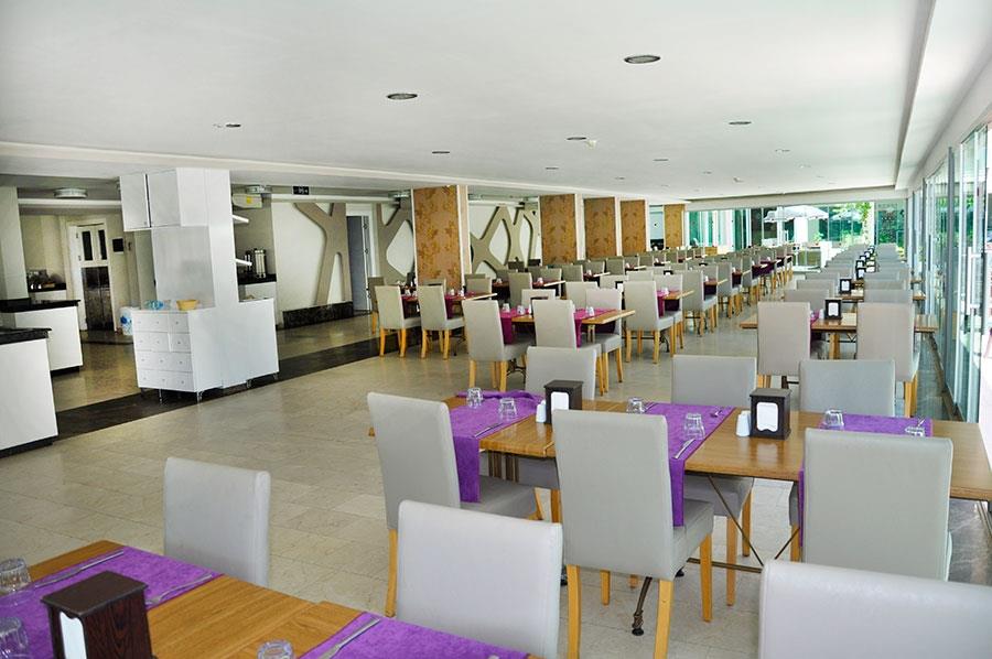 На территории отеля работает ресторан, обслуживание в котором производится по типу - «шведский стол».