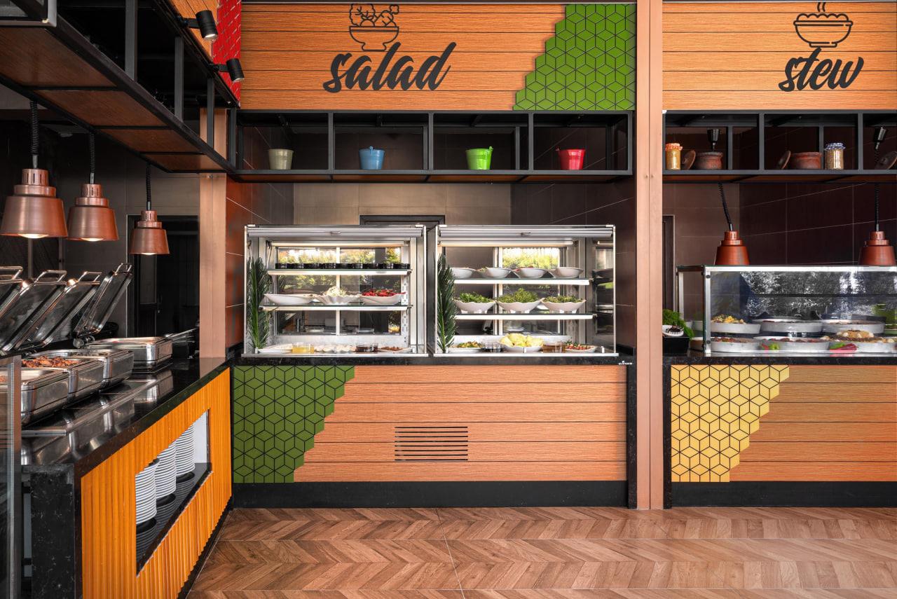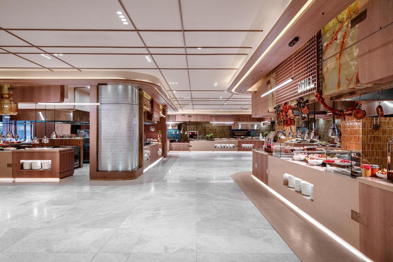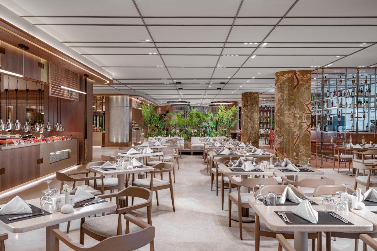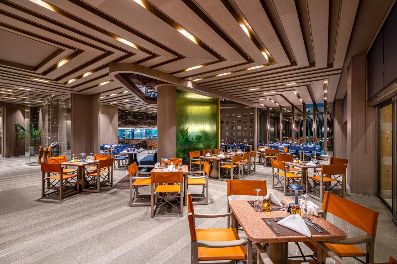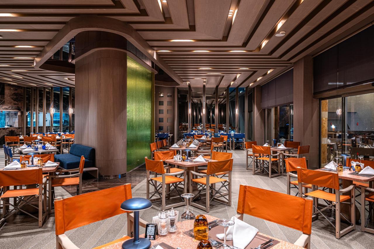 - главный ресторан, находящийся на -1 этаже с зоной для некурящих, может вместить до 400 человек и имеет открытую террасу на 100 человек;