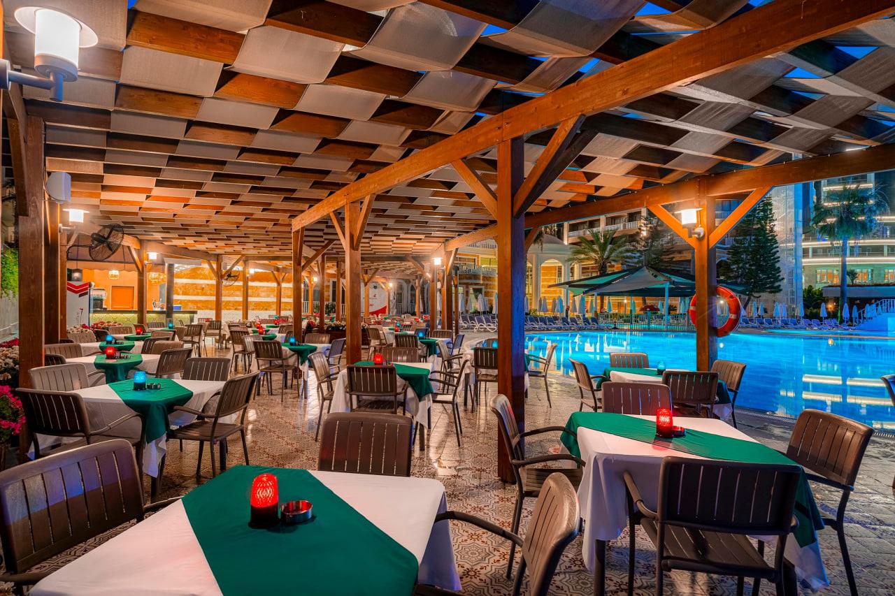 - 7 баров:PointБар(с 10:00 до 2:00 бесплатно, с 2:00 до 10:00 платно), бар у бассейна (с 10:00 до 24:00) бесплатно, диско бар с 23:00 до 2:00 бесплатно (в определенные дни недели), лобби-бар с 10:00 до 24:00 бесплатно, Бар на пляже с 10:00 до 16:00 Чардак Бар с 12:00 до 17:00 / с 21:00 до 24:00 Point Бар с 22:00 до 24:00 (бесплатно, требуется бронирование)