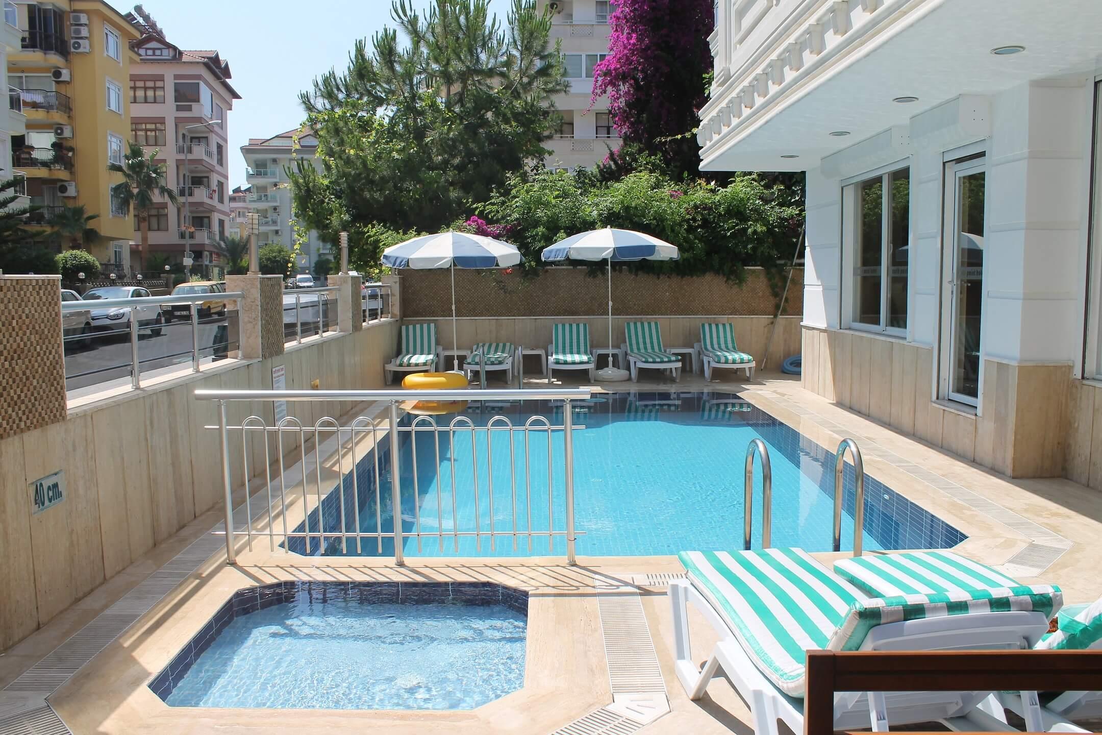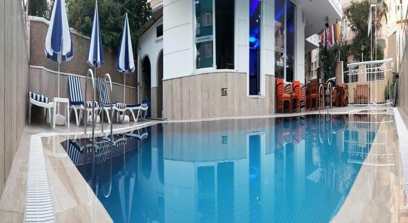 Одно из главных преимуществ – большой открытый бассейн, где можно вдоволь поплавать и расслабиться. Чтобы лишние заботы не отнимали ваше время отдыха, воспользуйтесь услугами по чистке одежды, которые входят в стоимость проживания. Питание представлено в виде ресторана и бара. У вас будет возможность насладиться традиционной турецкой кухней и попробовать самые разнообразные напитки.