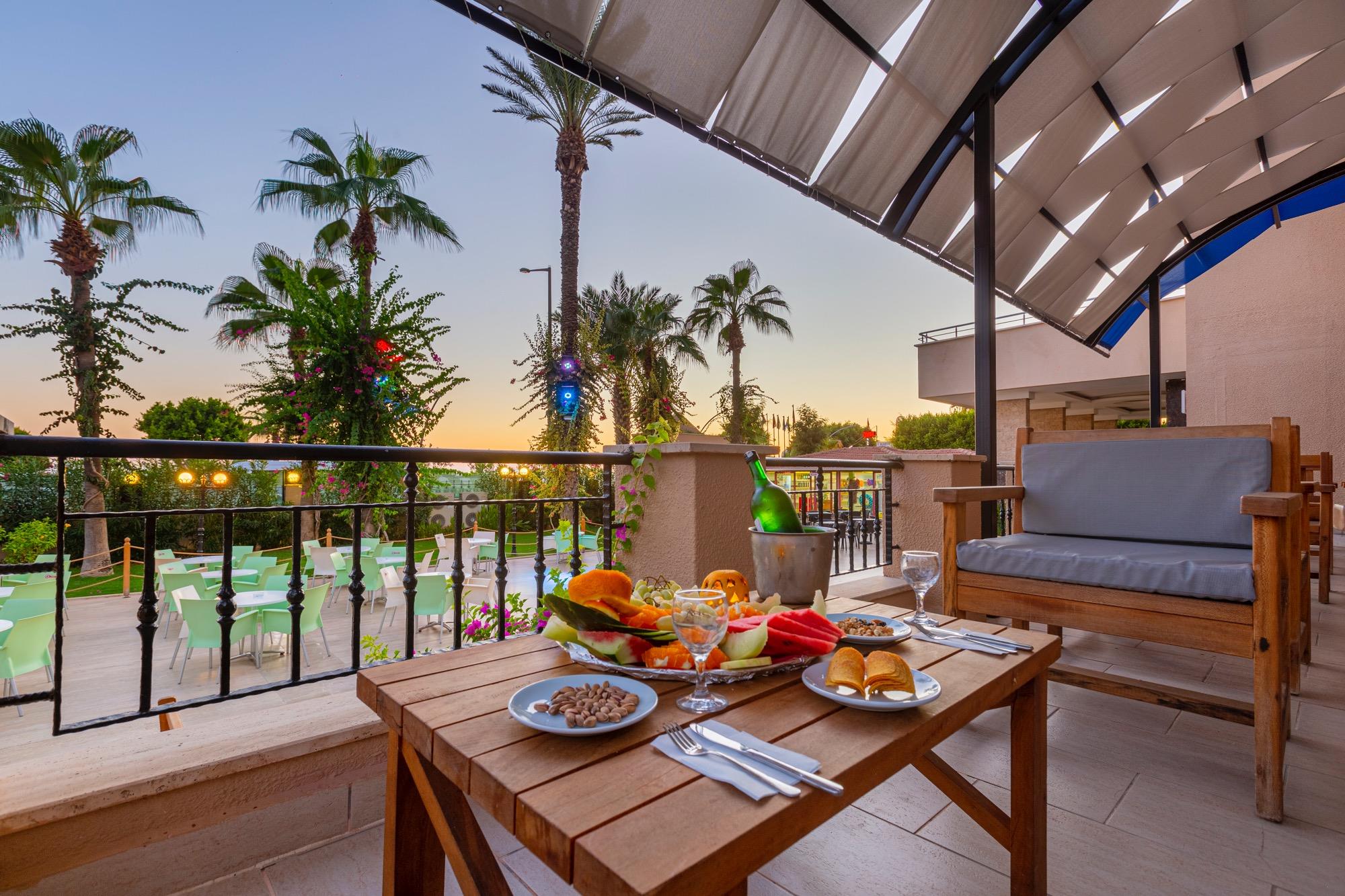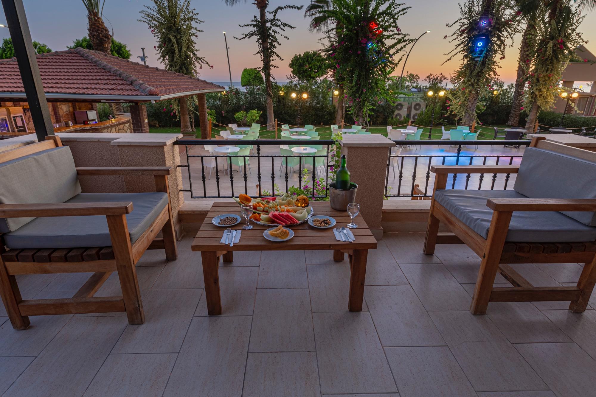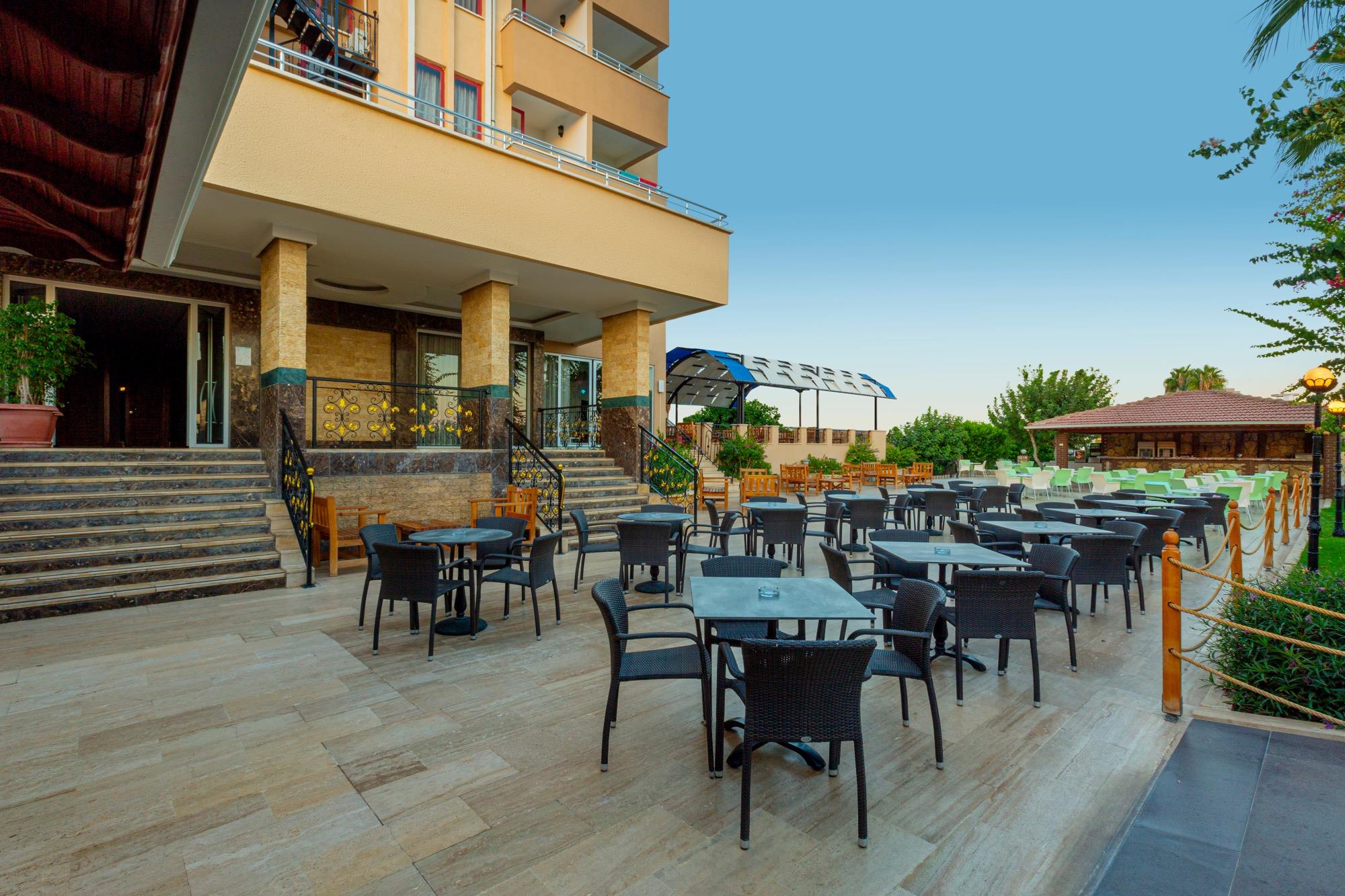 Отель расположен в 90 км от аэропорта г. Анталья, 1 км от г. Аланья, в п. Обагель