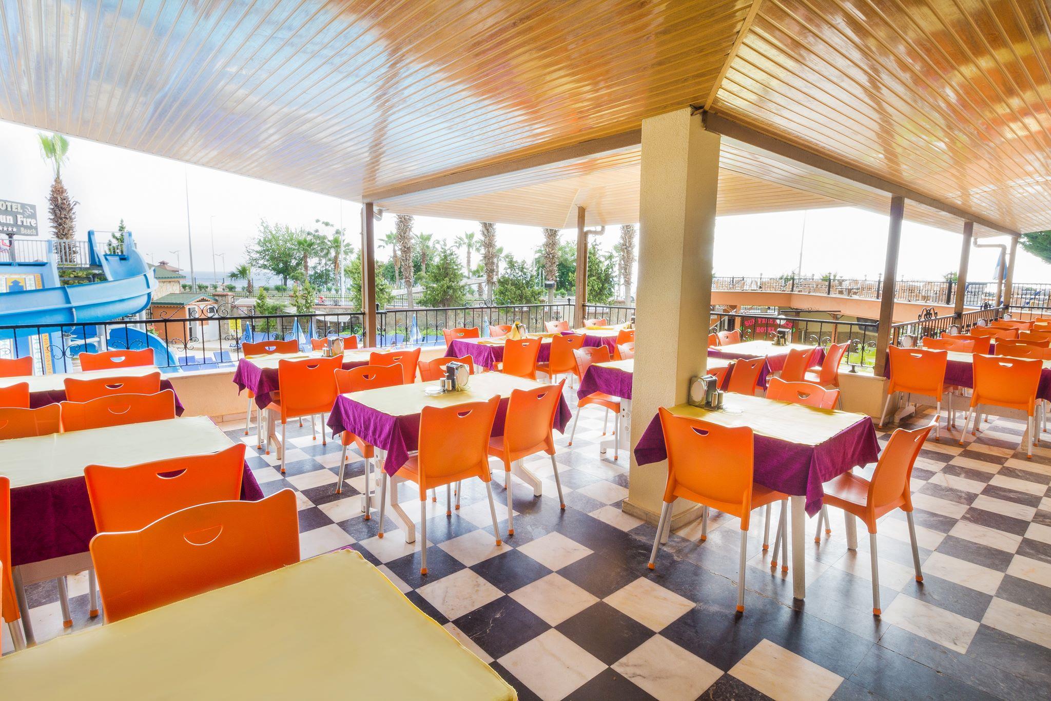 Отель Sun Fire Beach, расположенный в курортном поселке Махмутлар, представляет собой большое семиэтажное здание и предлагает к размещению сто пятьдесят шесть комфортабельных номеров. Большинство из них рассчитаны на проживание двух человек, но в некоторых имеются дополнительные кровати для детей. В каждом жилом помещении есть кондиционер, мини-бар и сейф. С большинства балконов открывается морская панорама, и лишь некоторые, особо тихие и удобные, выходят в сад.