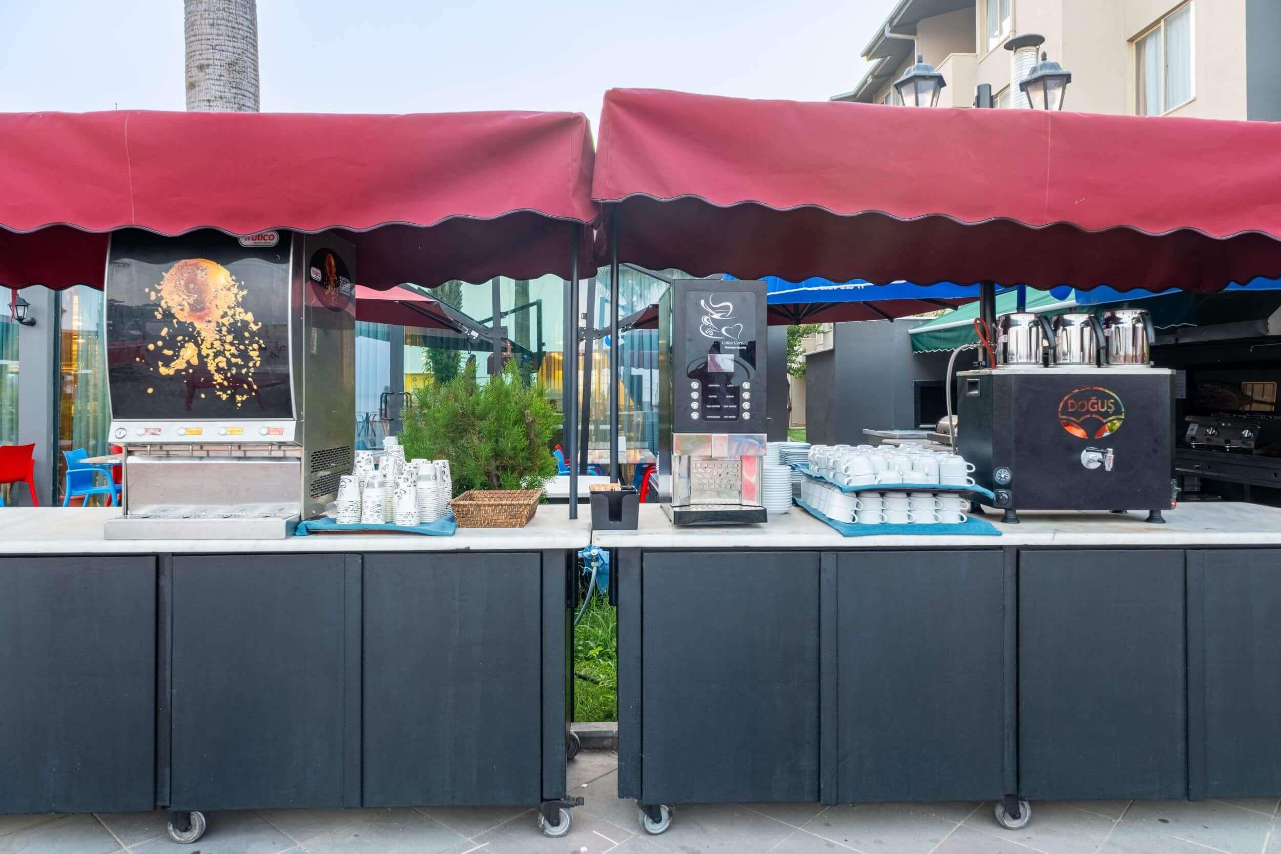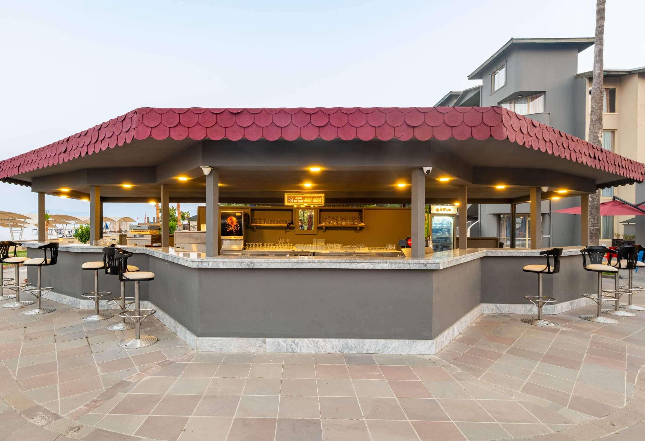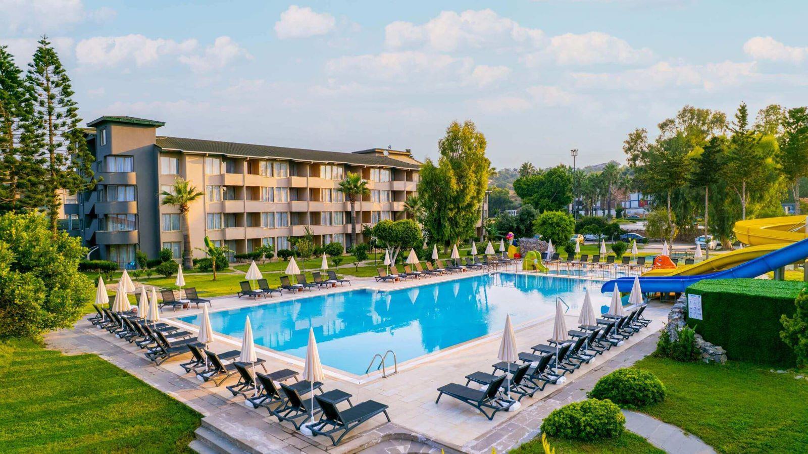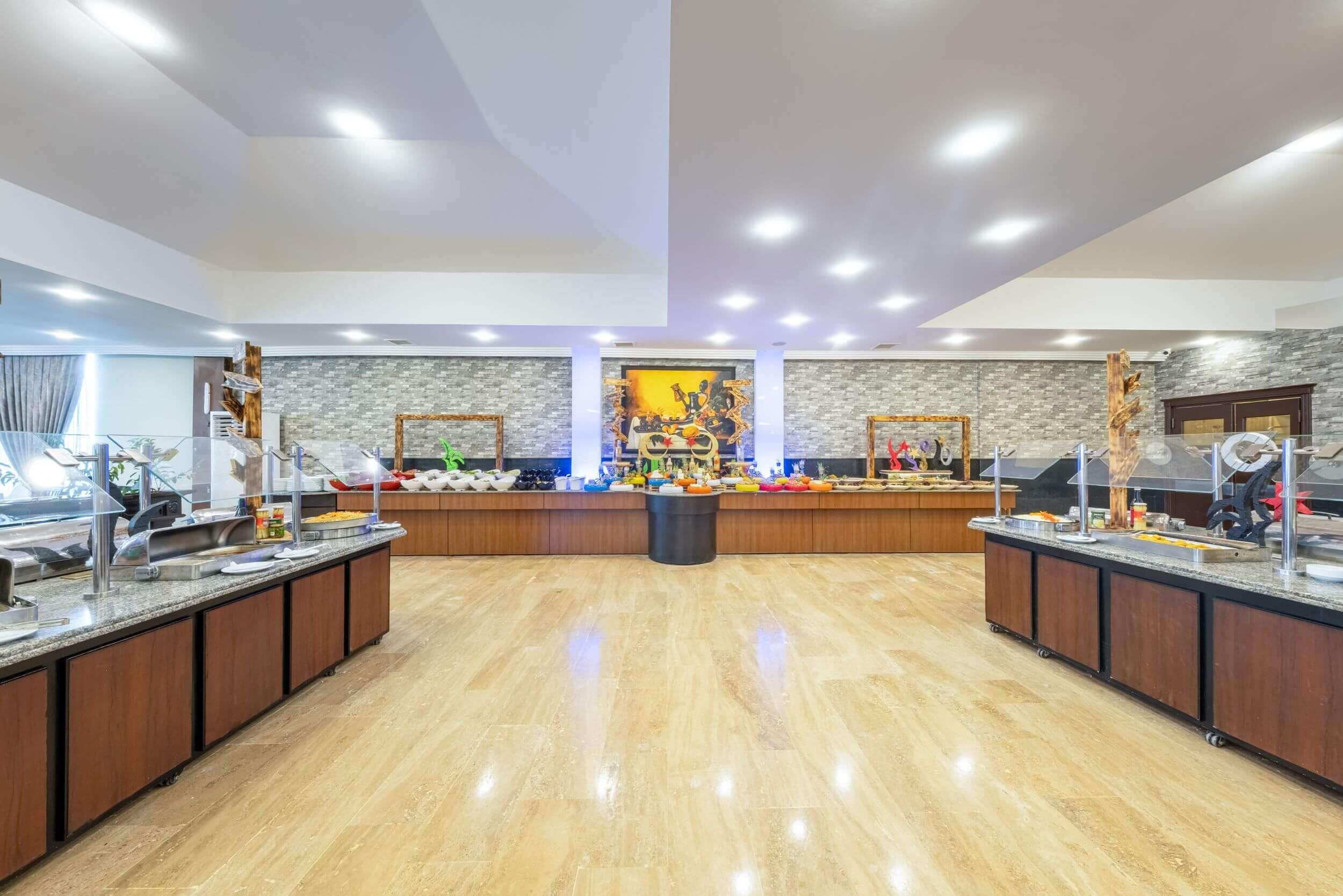 1 открытый ресторан (300 персон), 1 крытый ресторан (450 персон), 5 баров, 1 конференц-зал (400 кв.м), 2 открытых бассейна (314/329 кв.м.), аквапарк (3 горки, ч.р. 10:00-12:00/14:00-18:00), 1 теннисный корт с жестким покрытием, 1 теннисный корт с ковровым покрытием, парикмахерская, прачечная, сейф на ресепшн (платно), лифт, анимация, персонал отеля владеет немецким, русским и английским языками.