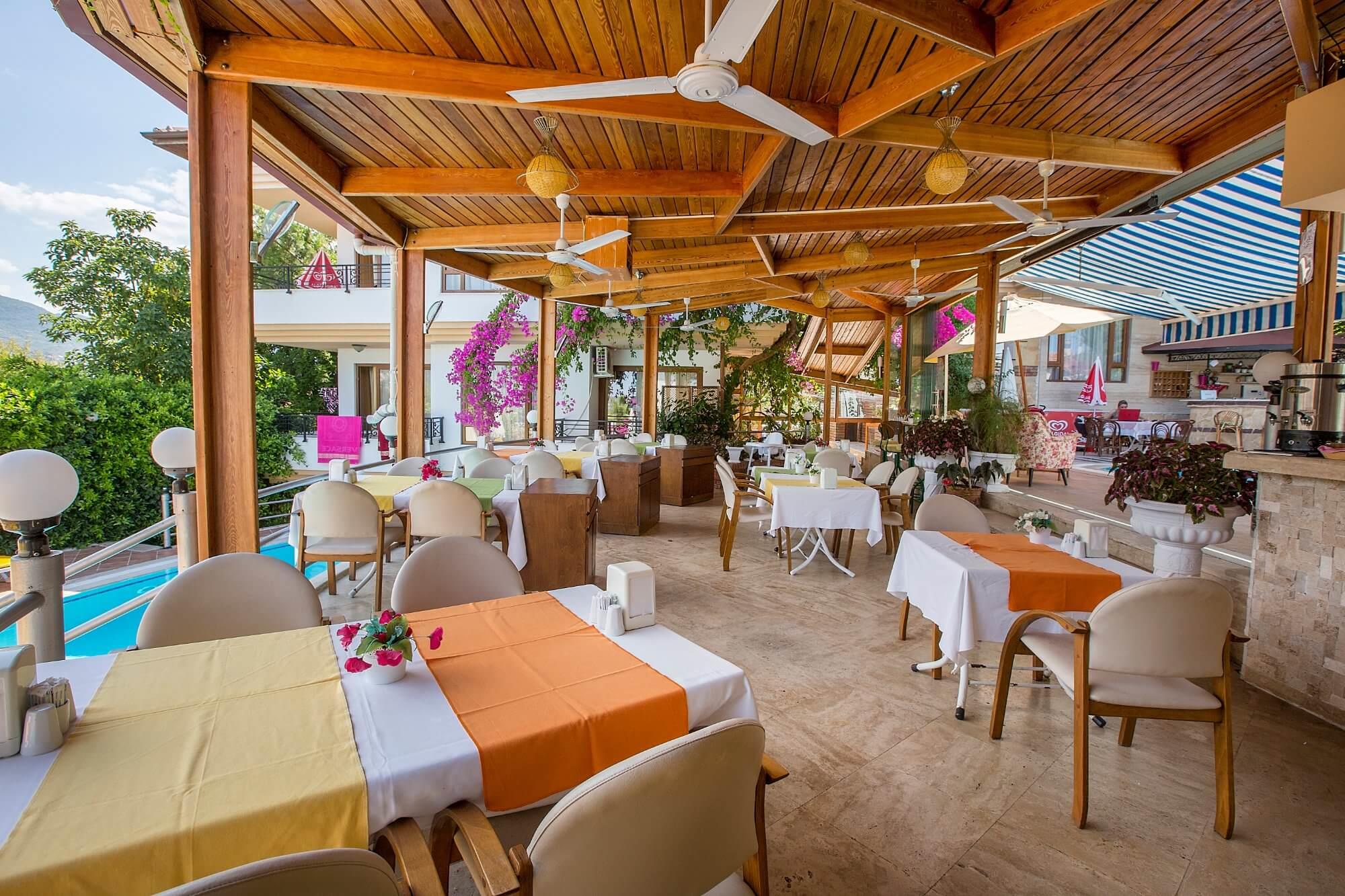 В ресторане отеля сервируют шведский стол на завтрак и подают по меню блюда турецкой и международной кухни. В Villa Sonata работает бар.