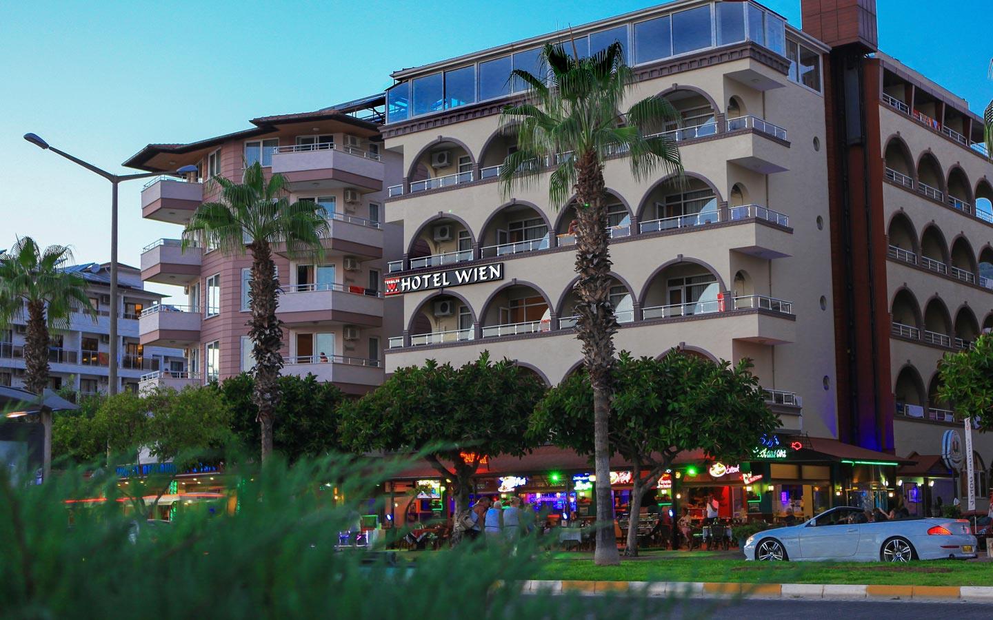 Отель Wien расположен в 750 м. от центра Алании, в 120 км. от аэропорта Анталии и всего в 50 м. от пляжа.