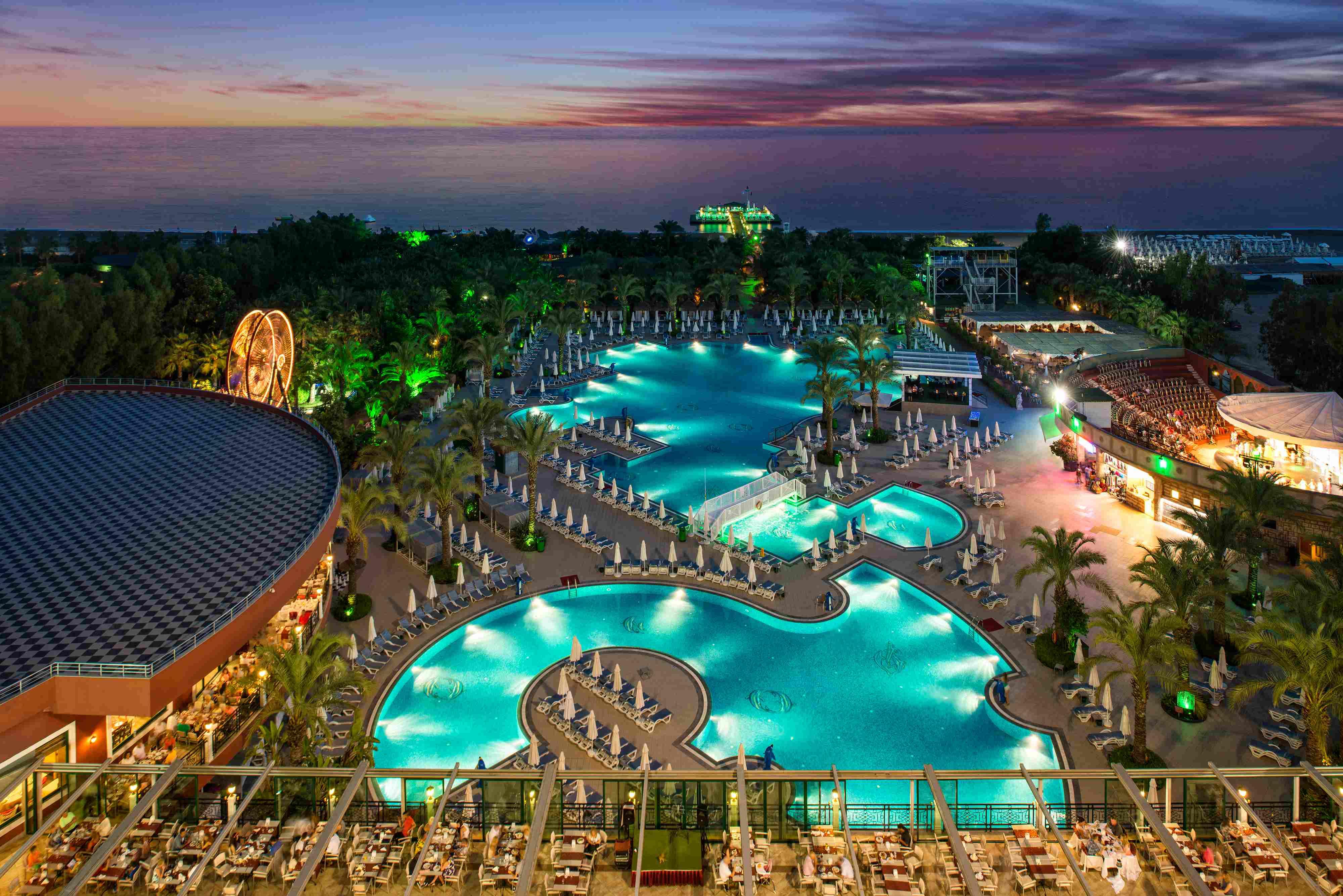 Роскошный отель класса люкс окружен шикарным пальмовым садом. Отель располагает песчано-галечным пляжем, где можно насладиться ласковым средиземноморским солнцем и водными развлечениями. Для самых маленьких гостей работает аквапарк, услуги няни и многоязычная анимация.