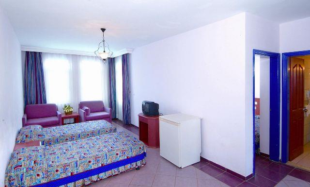 Отель представляет собой трехэтажное здание, в котором к размещению предлагаются стандартные номера. В них нет особых изысков, но скромный декор с использованием тканей ярких цветов поднимает настроение и вселяет позитив. Все номера оборудованы кондиционерами, телефонами и холодильниками. С балконов открывается вид на внутренний двор, где расположен большой открытый бассейн, который манит приятной прохладой и располагает к освежающим водным процедурам.