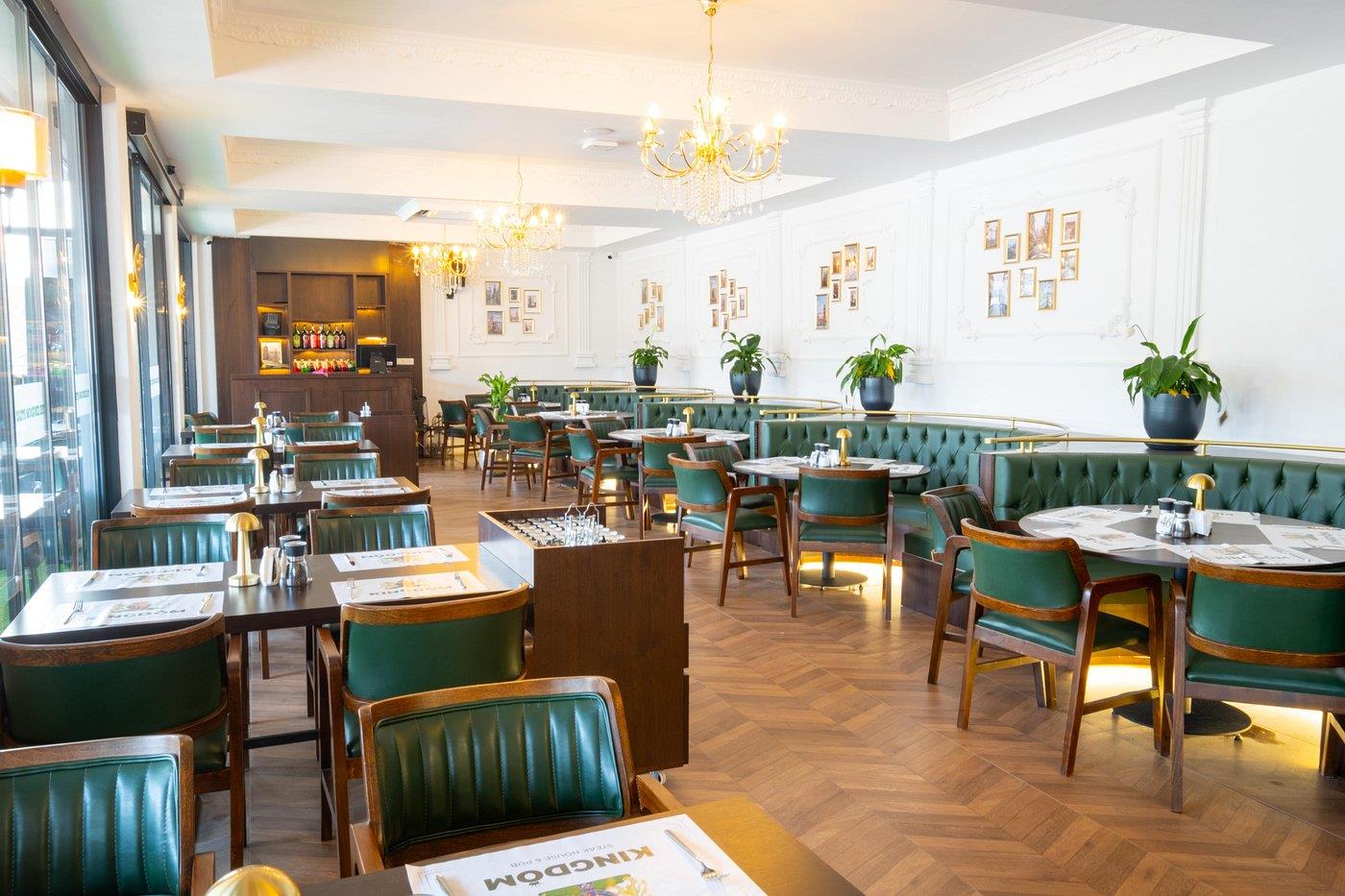На территории отеля работает ресторан-бар Kingdom Steak House & Pub, предлагающий блюда турецкой и мировой кухни. Завтрак сервируется по системе шведский стол, обед и ужин – по меню. Предусмотрены веганские, вегетарианские, халяльные, безглютеновые и диетические блюда.
