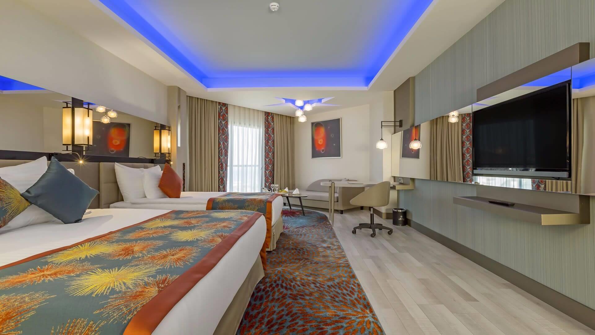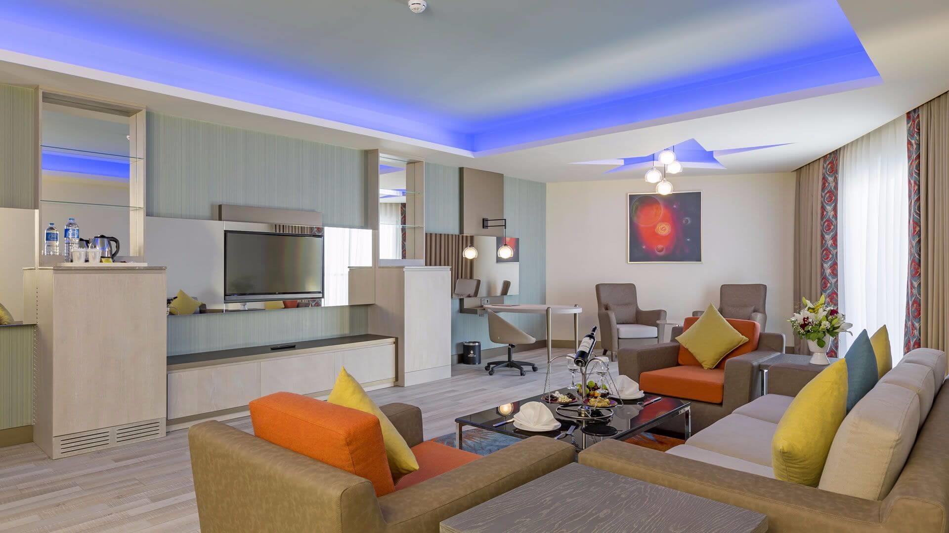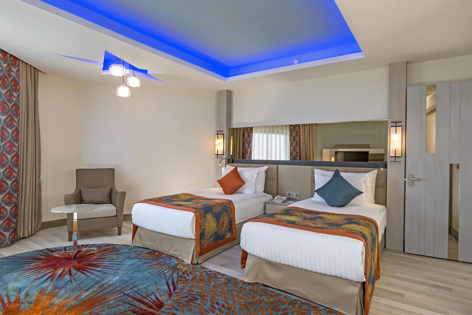 Во всех номерах – каждый оформлен в современном стиле – есть ванная комната с феном, кондиционер, мини-бар, принадлежности для приготовления чая/кофе, сейф, телевизор, телефон и балкон, а в некоторых имеется джакузи. По запросу семьям с малышами предоставляется детская кроватка. В Royal Seginus оборудованы специальные апартаменты для гостей с ограниченными физическими возможностями, для семей и некурящих.