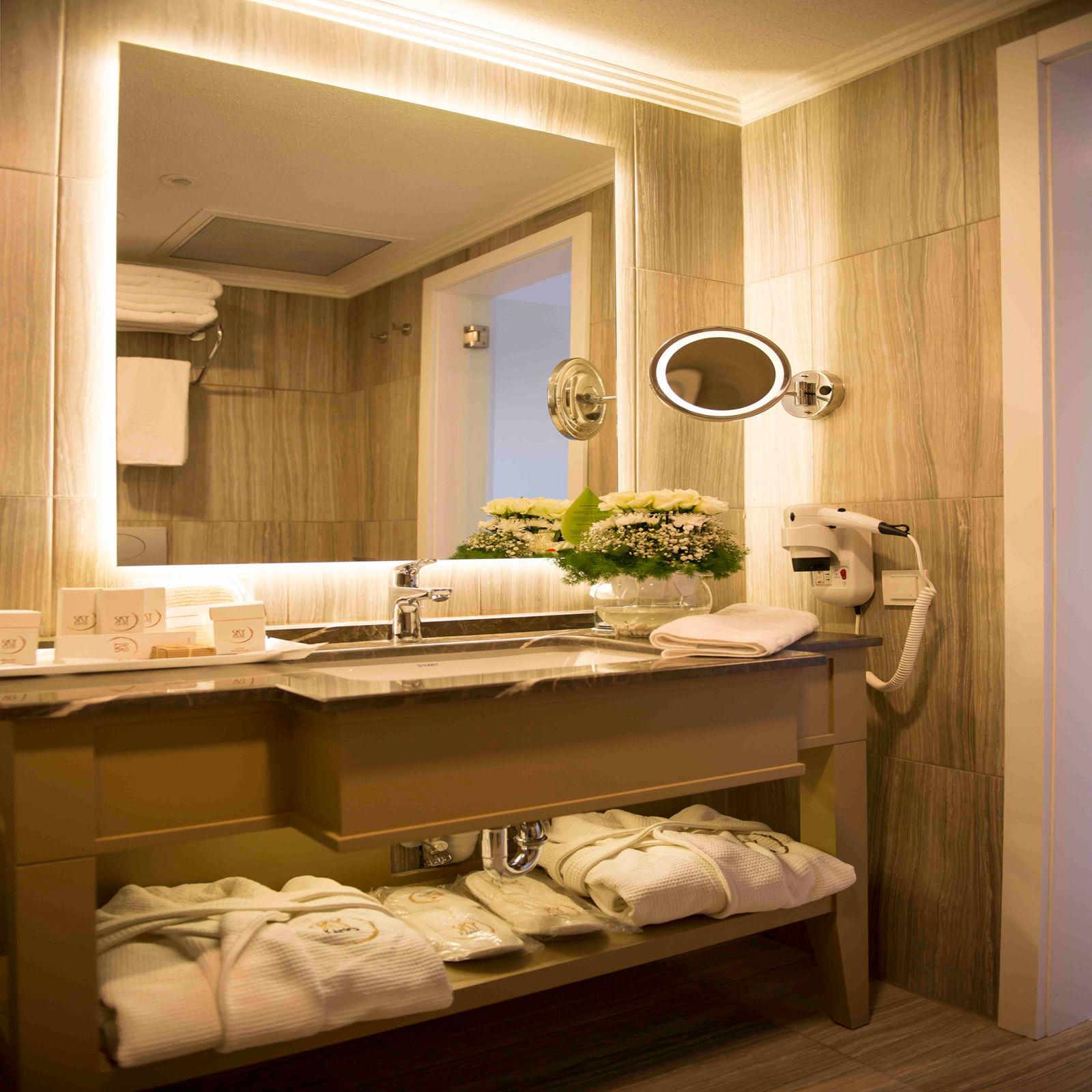 Стандартные удобства номеров включают в себя ванную комнату с феном, телевизор, телефон и бесплатный доступ к сети Wi-Fi. В некоторых комнатах есть балкон с видом на море или город. В номерах запрещено курить.