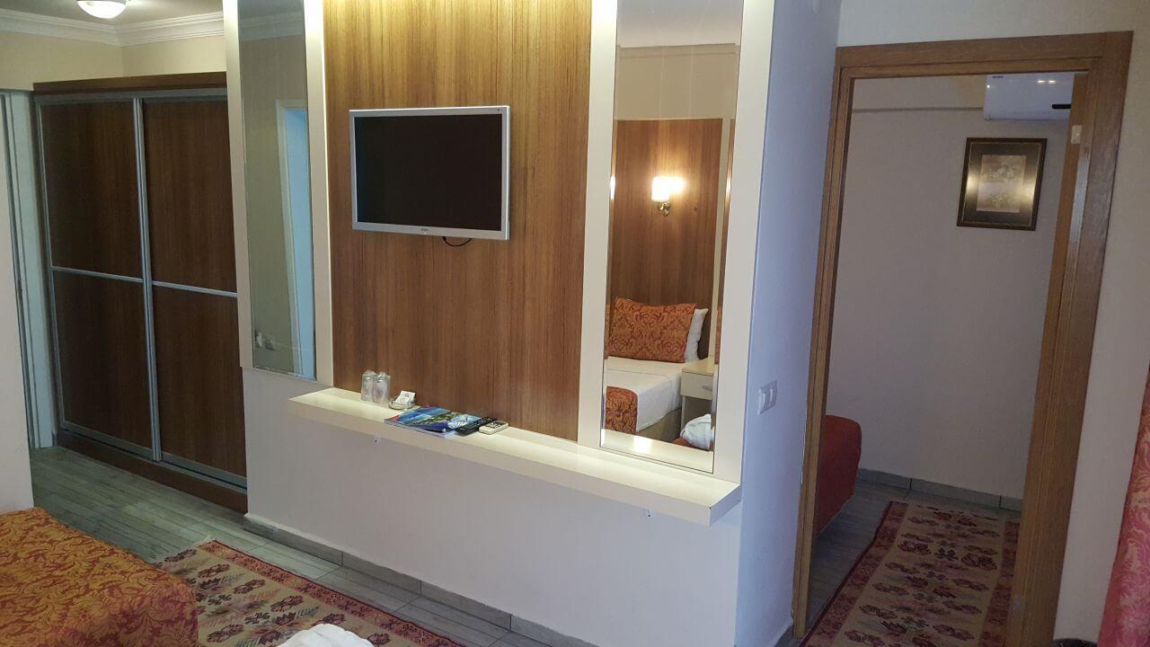 Гостям предоставляются на выбор номера самых разных категорий. Каждый сможет выбрать себе апартаменты в соответствии со своим вкусом и бюджетом. Преимущественно это светлые просторные комнаты с современным и стильным интерьером. В перечень удобств входит индивидуальная ванная комната, Wi-Fi в номере, кондиционер, мини-бар, сейф, телефон, телевизор и собственный балкон. Достаточно услуг предусмотрено для детей, поэтому Buyuk Berk Hotel можно смело выбирать местом семейного отдыха.