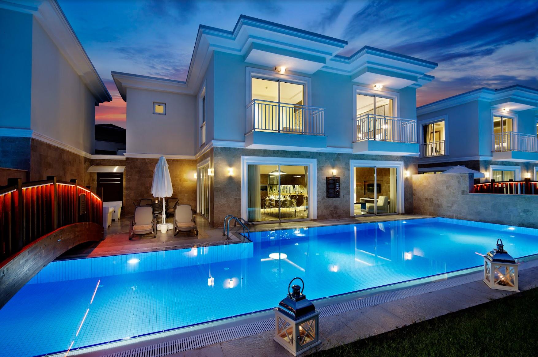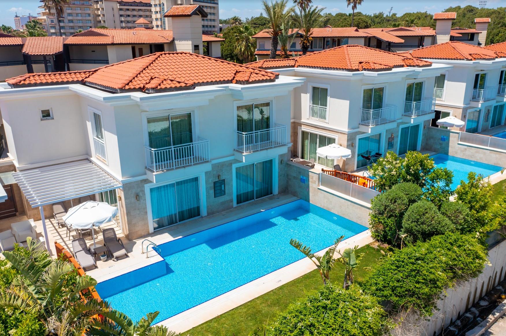 Villa Bellis (200 m2 , бассейн 66 м2, сад 68 м2, 3 спальни, 1 гостиная, кухня, балкон, терраса, обеденная зона, джакузи, инд. Кондиционер, ванные с душем или